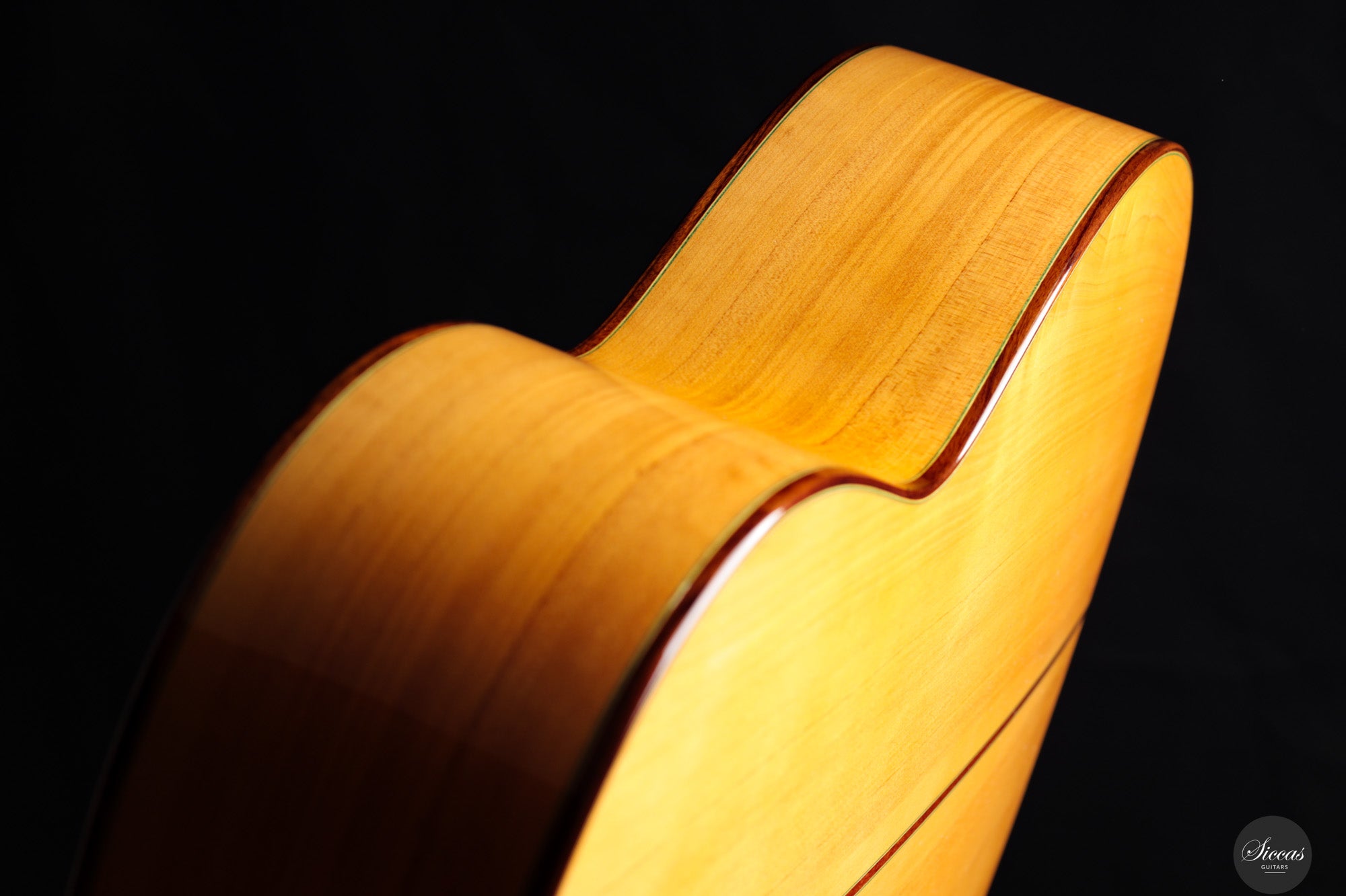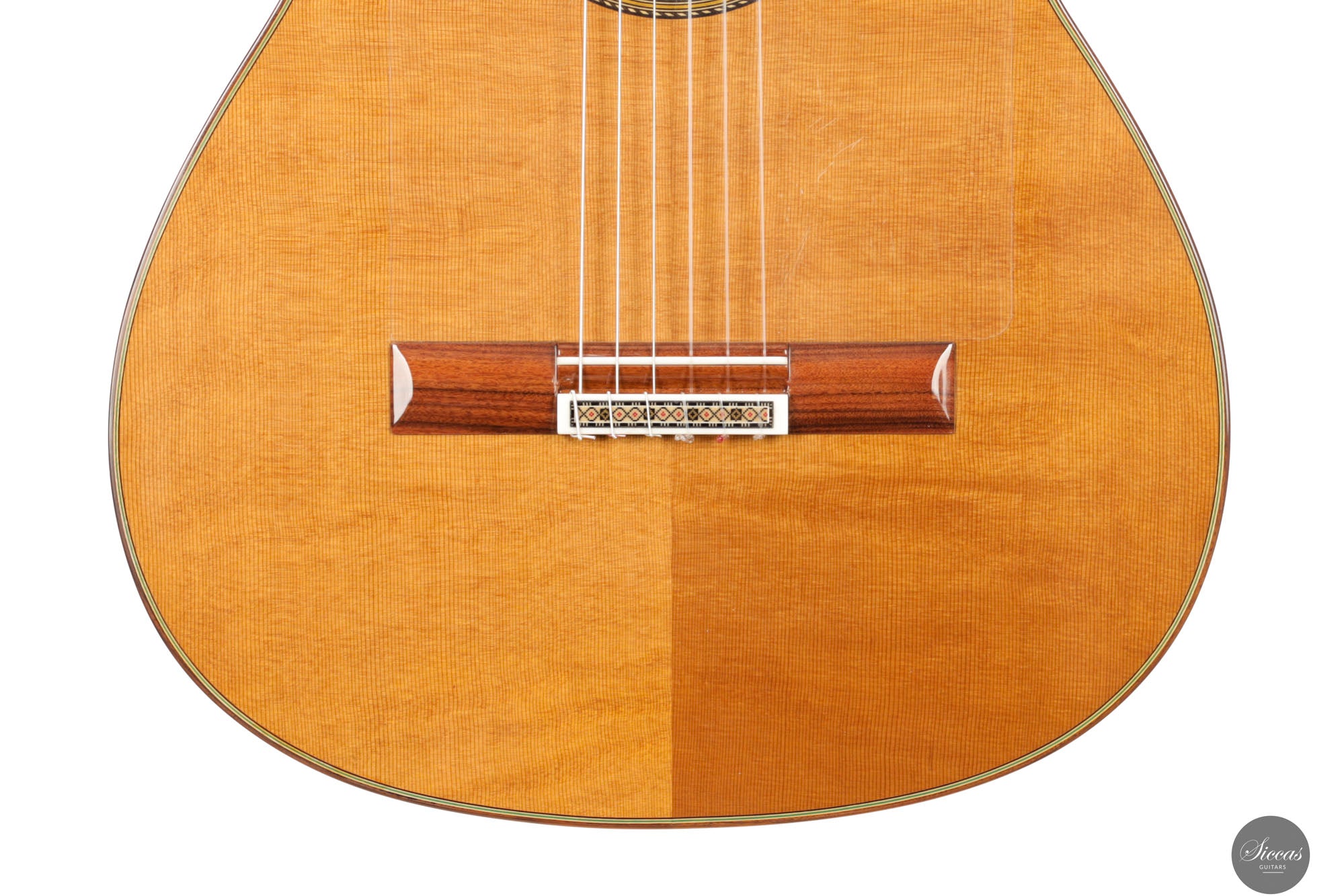 Diese 2025 gebaute Flamenca Blanca von Vicente Carrillo kombiniert zwei in dieser Kategorie ungewöhnliche Elemente: eine Zederndecke und eine lattice-Verstrebung. Während im traditionellen Flamenco meist Fichte wegen ihrer scharfen Ansprache und kurzen Tonentwicklung bevorzugt wird, verleiht die Zeder diesem Instrument eine wärmere, weichere Klangfarbe – ohne dabei die Reaktionsschnelligkeit zu mindern. Die lattice-Konstruktion verstärkt diesen Charakter zusätzlich durch erhöhtes Sustain und mehr klangliche Tiefe. Die Ansprache bleibt präzise, wirkt aber weicher im Übergang, und die Klangfarben entfalten sich mit minimalem Einsatz. Der Korpus aus spanischer Zypresse bewahrt die trockene Grundfarbe und rhythmische Klarheit. So entsteht ein Instrument, das traditionelle Flamenco-Tugenden mit einer erweiterten Ausdrucksskala verbindet – ideal für Spieler, die klangliche Differenzierung und musikalische Flexibilität suchen.