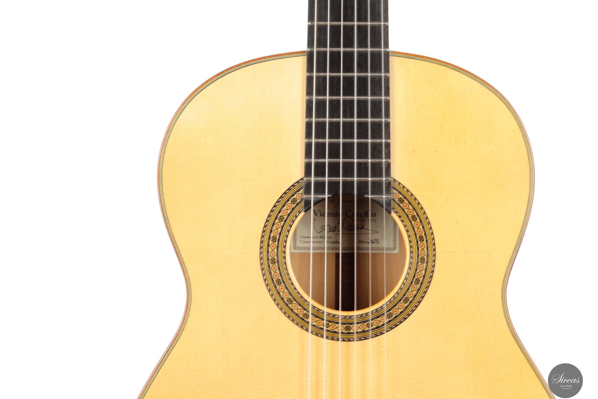 Die Familie Carrillo begann 1744 in Casasimarro mit dem Gitarrenbau – einem Ort in der Region Manchuela Conquense, der bereits im 19. Jahrhundert als „El pueblo de las guitarras“ bekannt war. Vicente Carrillo führt diese Tradition in siebter Generation fort. In der ursprünglichen Werkstatt tätig, wurde er 2009 mit dem „Regional Craftsmanship Award“ und 2010 mit dem spanischen „National Award“ ausgezeichnet. Seine Instrumente zeichnen sich durch eine charakteristische Balance aus: definierte, klare Bässe treffen auf süße, gesangliche Diskantlagen. Innovation spielt in seiner Werkstatt eine zentrale Rolle – sowohl im Hinblick auf Materialien als auch auf Konstruktionstechniken. Zu den Künstlern, die auf Carrillo-Gitarren spielen oder spielten, zählen Paco de Lucía, Tomatito, J.M. Cañizares, El Niño Josele, Rafael Cañizares, Javier Limón, Keith Richards und Josemi Carmona.
