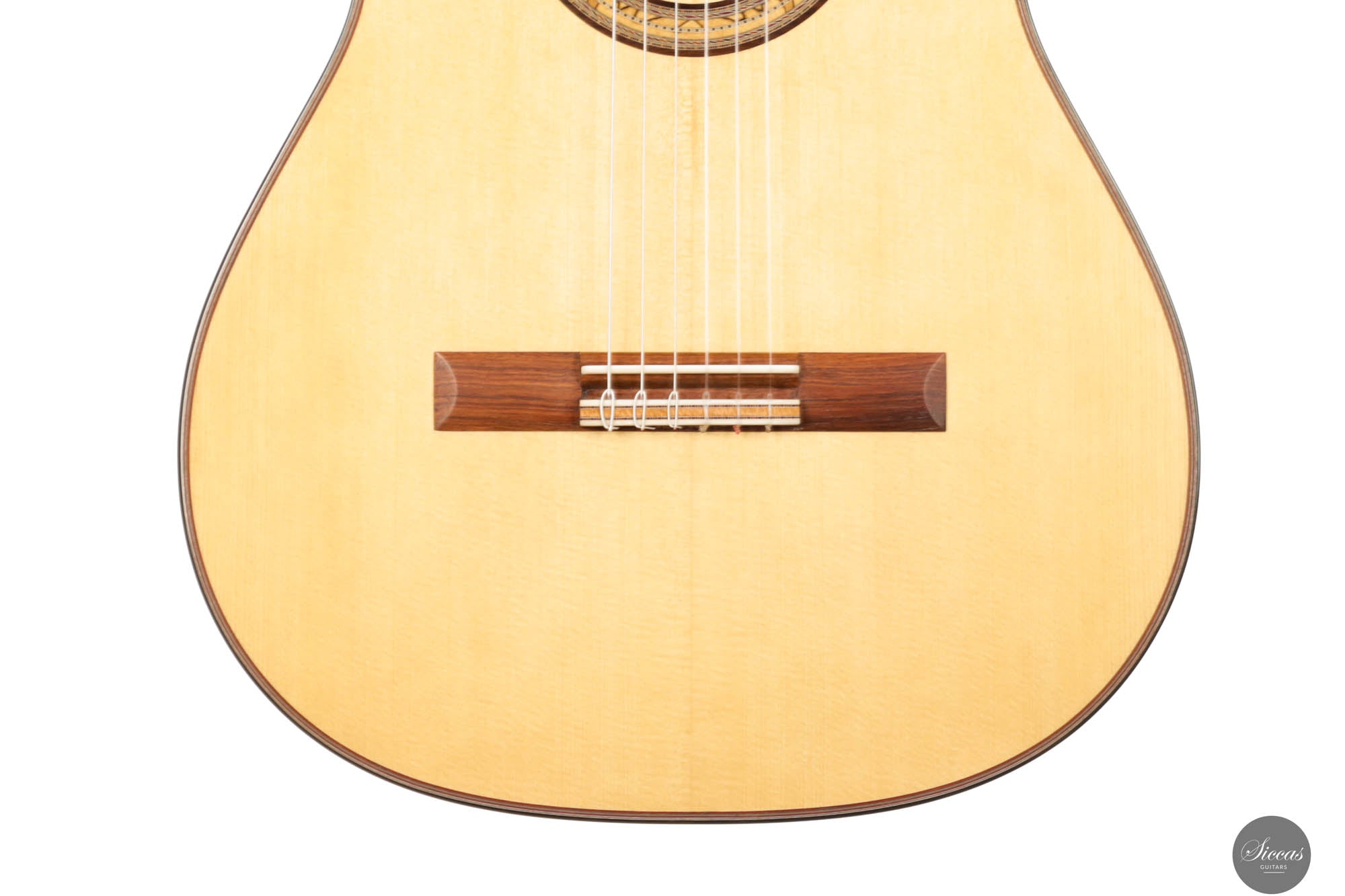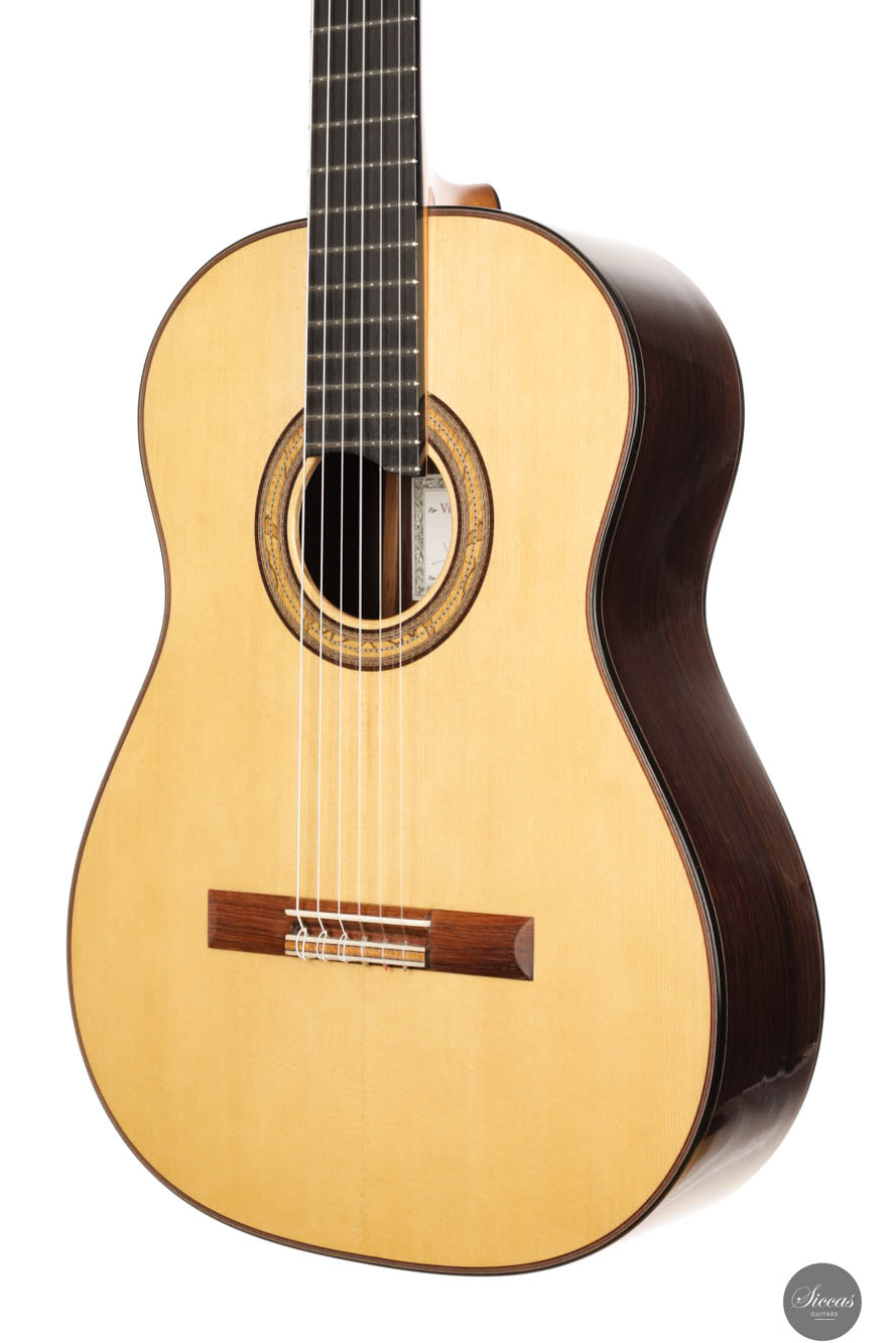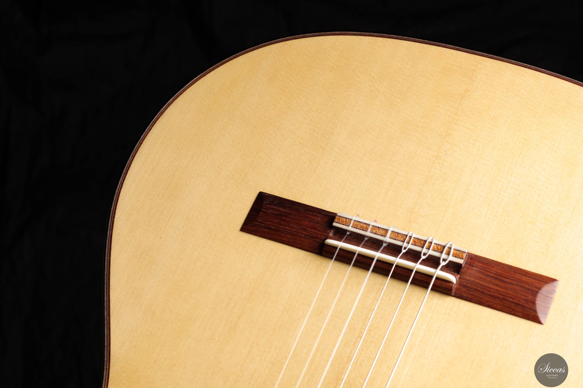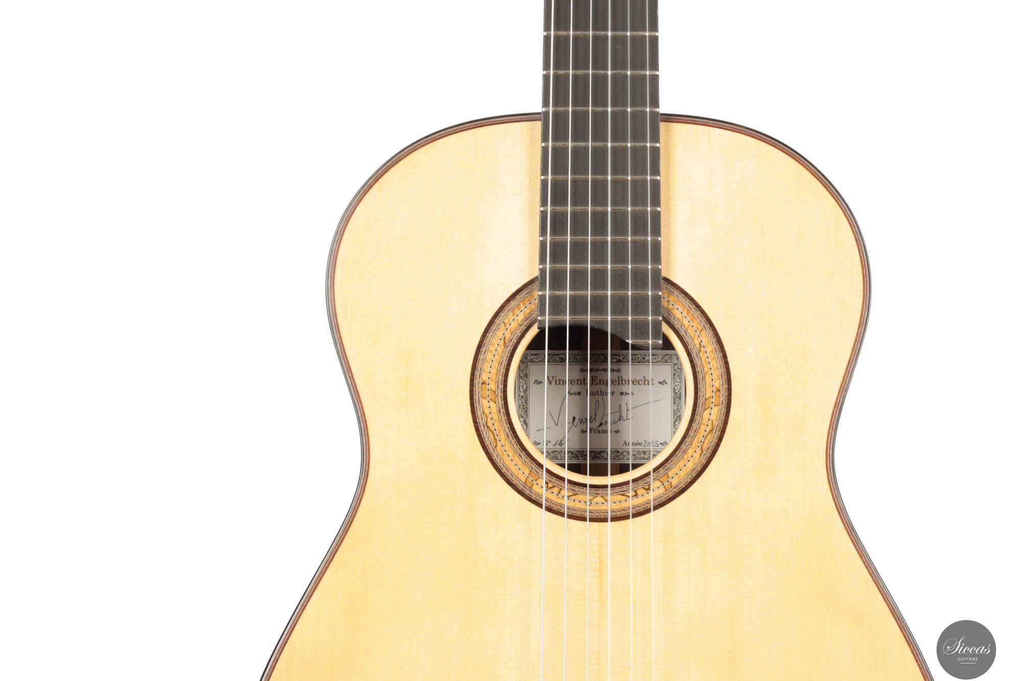 Vincent Engelbrecht is a distinguished classical guitar maker based in Forcalquier, Provence, France. His journey began in 1997 at the age of 17, when he apprenticed under the renowned luthier Christopher Schuetz for three years. Following his apprenticeship, Vincent deepened his understanding of sound by working as a sound engineer and acoustician for six years. In 2006, he returned fully to guitar making, applying his acoustic expertise to develop a unique bracing system. This innovative design features a star-woven spruce mesh integrated into a spruce and balsa top, dramatically enhancing both tonal depth and responsiveness.