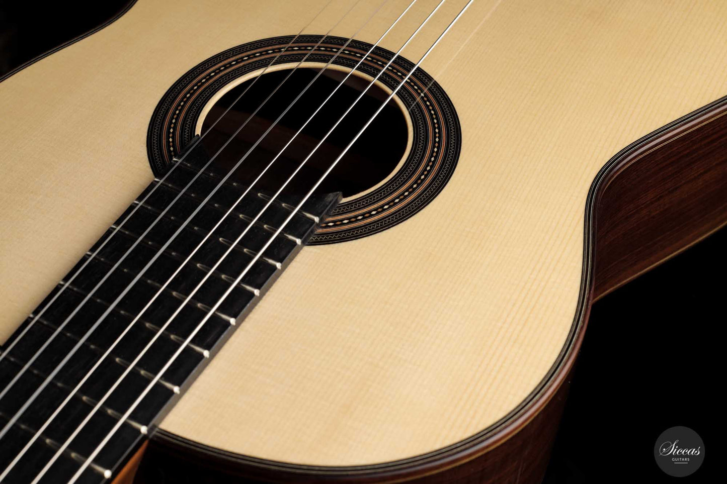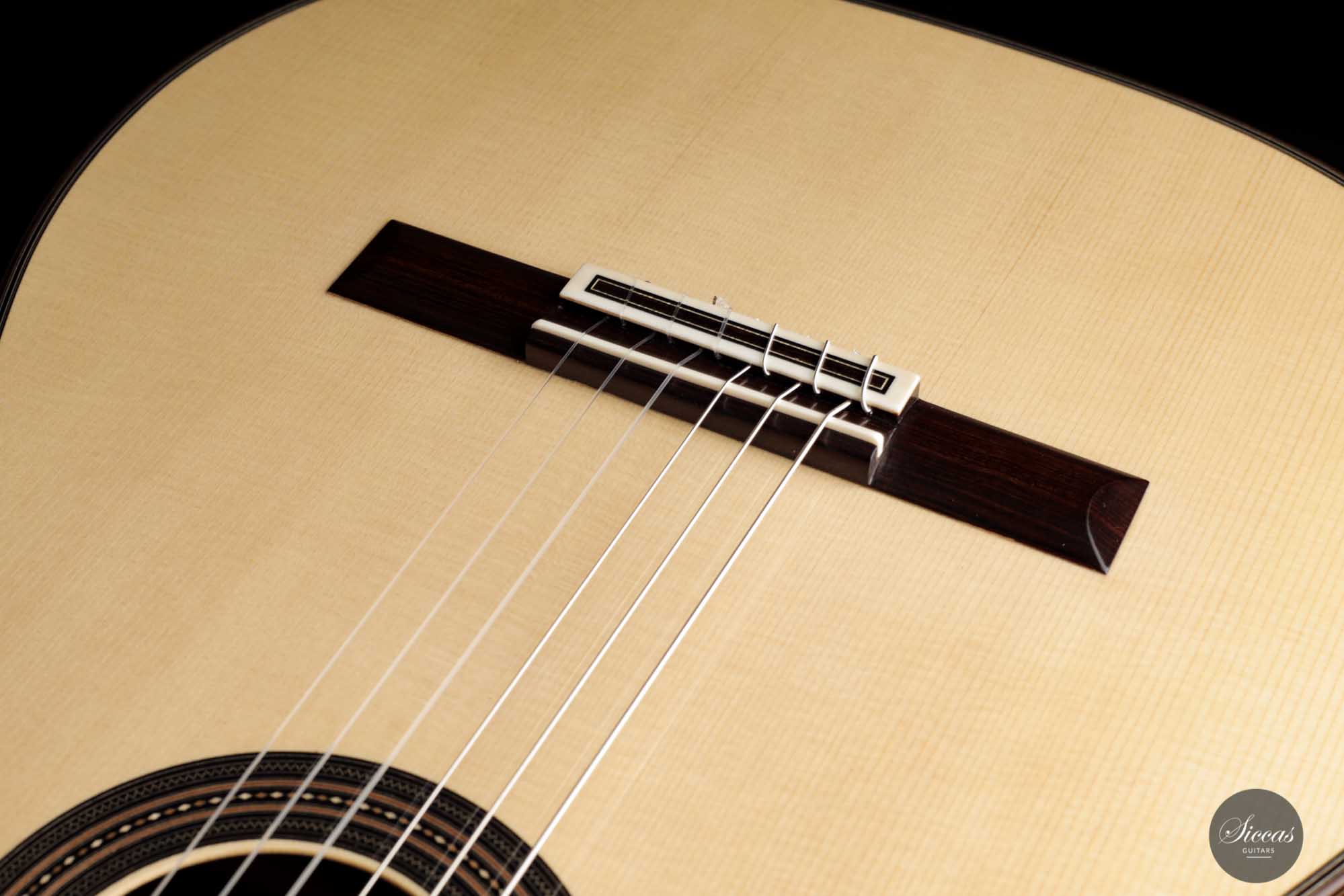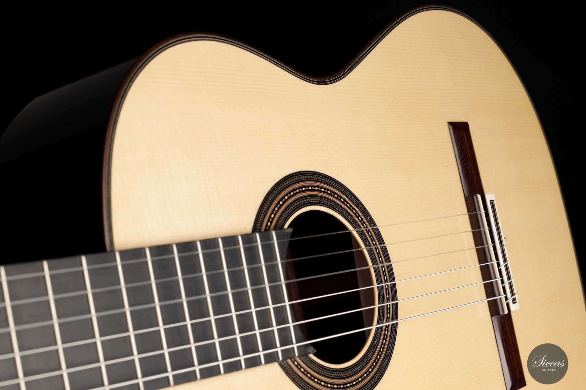 This is a grandiose guitar, a superb concert instrument, sophisticated and complete in every way. It is not only the sonority and response that are superb, but also the wide range of tonal colours offered by this Walter Verreydt with Lattice bracing that is impressive and inspiring. The first E-string has such liveliness and freedom that it unfolds its singing voice with impressive ease. Furthermore, the overall balance and sustain combined with the excellent playability make this guitar a five-star instrument. This Verreydt is truly special and highly recommended in every respect for any player looking for a superior and inspiring guitar.
