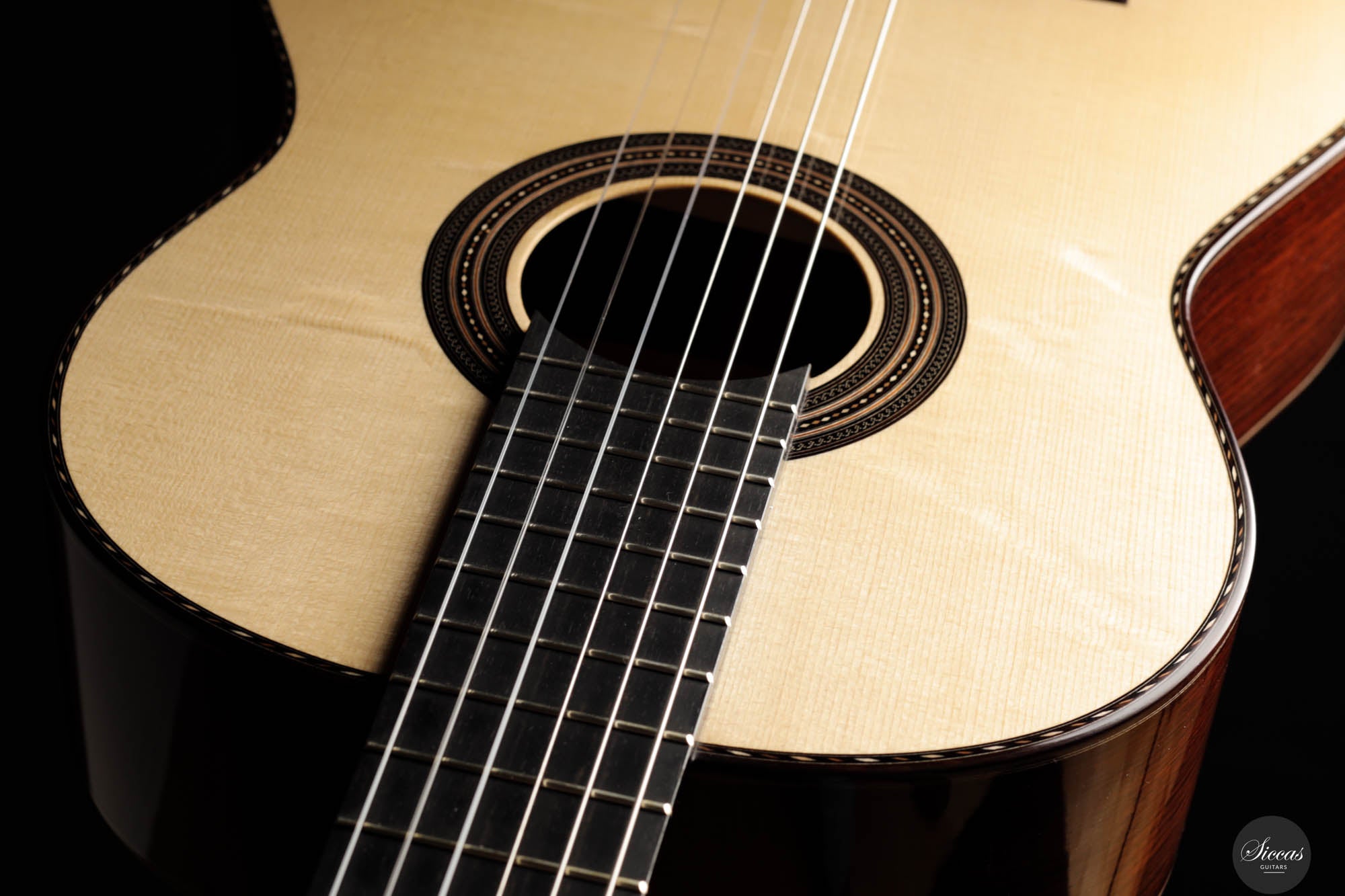 Die Gesamtbalance und das Sustain dieser Verreydt Gitarre sind ebenfalls bemerkenswert und erhöhen ihren Status als erstklassiges Instrument. Die hervorragende Bespielbarkeit der Gitarre, ermöglicht durch ihr durchdachtes Design und ihren Aufbau, stellt sicher, dass sie über längere Zeiträume bequem gespielt werden kann, was sie ideal für Übung und Aufführung macht. Die akribische Liebe zum Detail in ihrer Konstruktion und die Qualität der verwendeten Materialien tragen zu ihrem außergewöhnlichen Klang und ihrer Bespielbarkeit bei. Diese Verreydt Gitarre ist in jeder Hinsicht besonders und wird jedem Spieler empfohlen, der ein überlegenes und inspirierendes Instrument sucht.