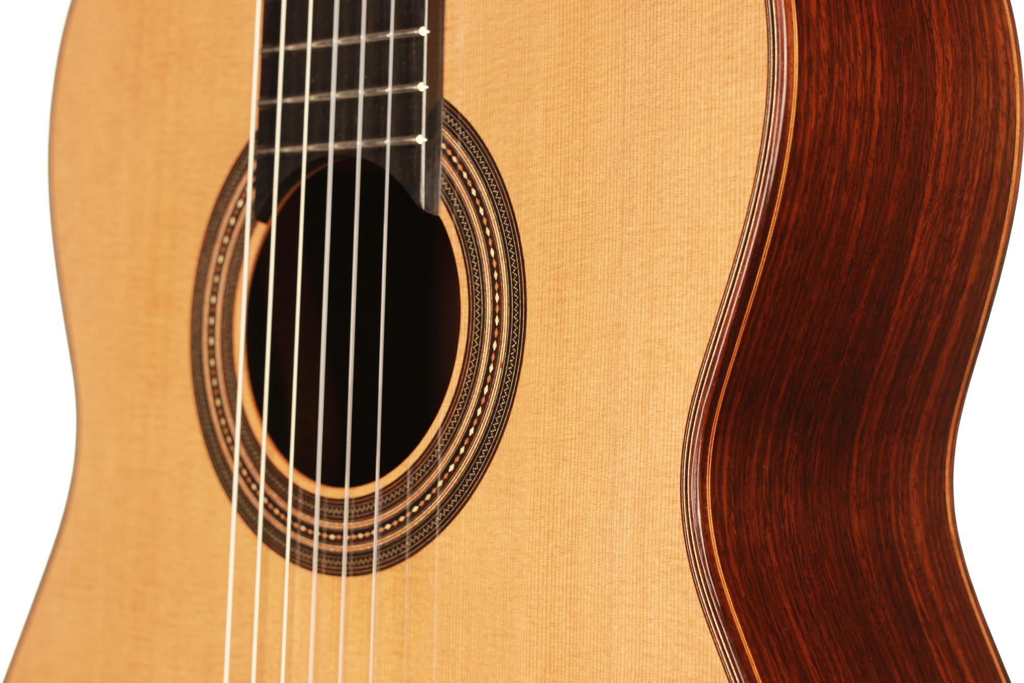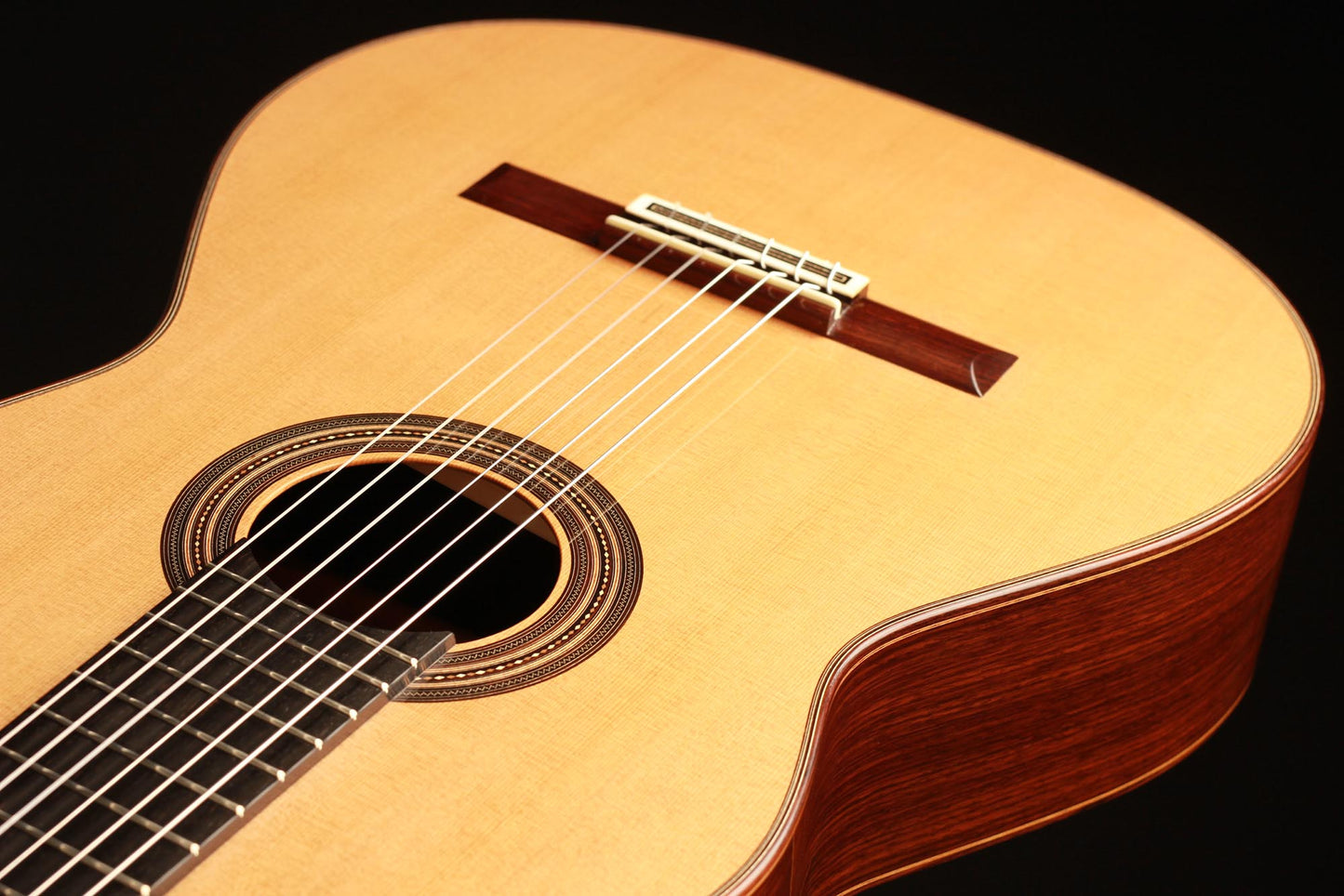 Die klassische Gitarre mit ihren weichen Nylonsaiten und ihrem charakteristischen Timbre ist zum Symbol der Kammermusik, der spanischen Tradition und des Konzertrepertoires geworden. Ihre moderne Form prägte Antonio de Torres im 19. Jahrhundert, indem er den Standard für Korpus, Fächerbeleistung und die 65-Zentimeter-Mensur setzte, die bis heute verwendet werden. Instrumente dieser Kategorie eröffnen eine reiche Palette von den feinen romantischen Miniaturen Tárregas bis zu den majestätischen Konzerten Rodrigos. Hier finden Sie Gitarren, die historische Kontinuität bewahren und zugleich zu neuen Interpretationen anregen.Alle Produkte der Kollektion ansehen -