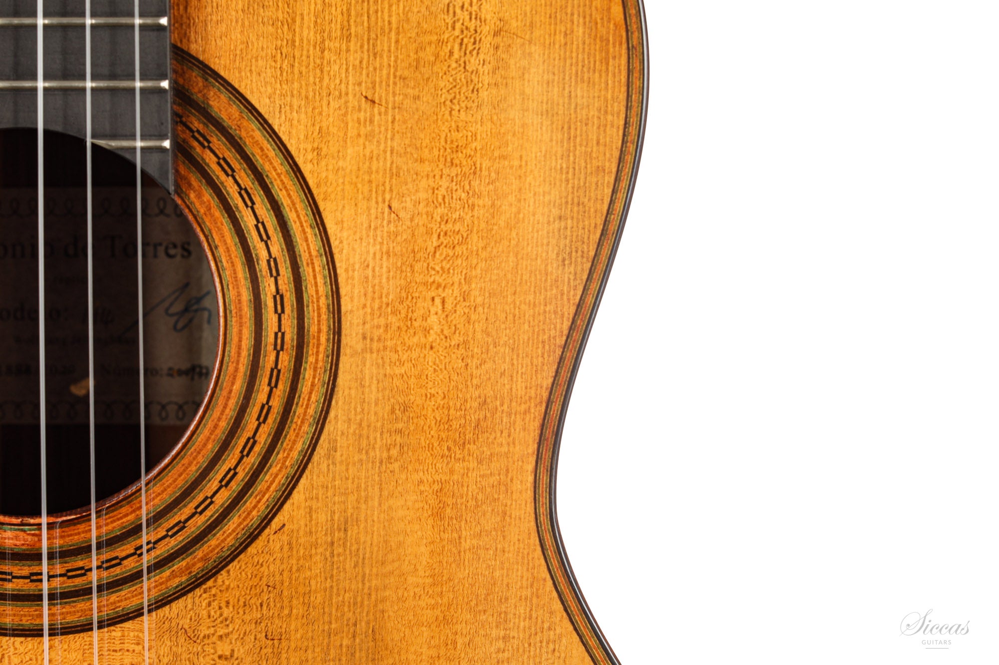 Model 114 Torres is a tribute to Antonio de Torre’s guitar of the second construction period, played by Tárrega himself. The original was built in 1888 and this homage is made in a gorgeous way full of details that are featured on the original guitar.