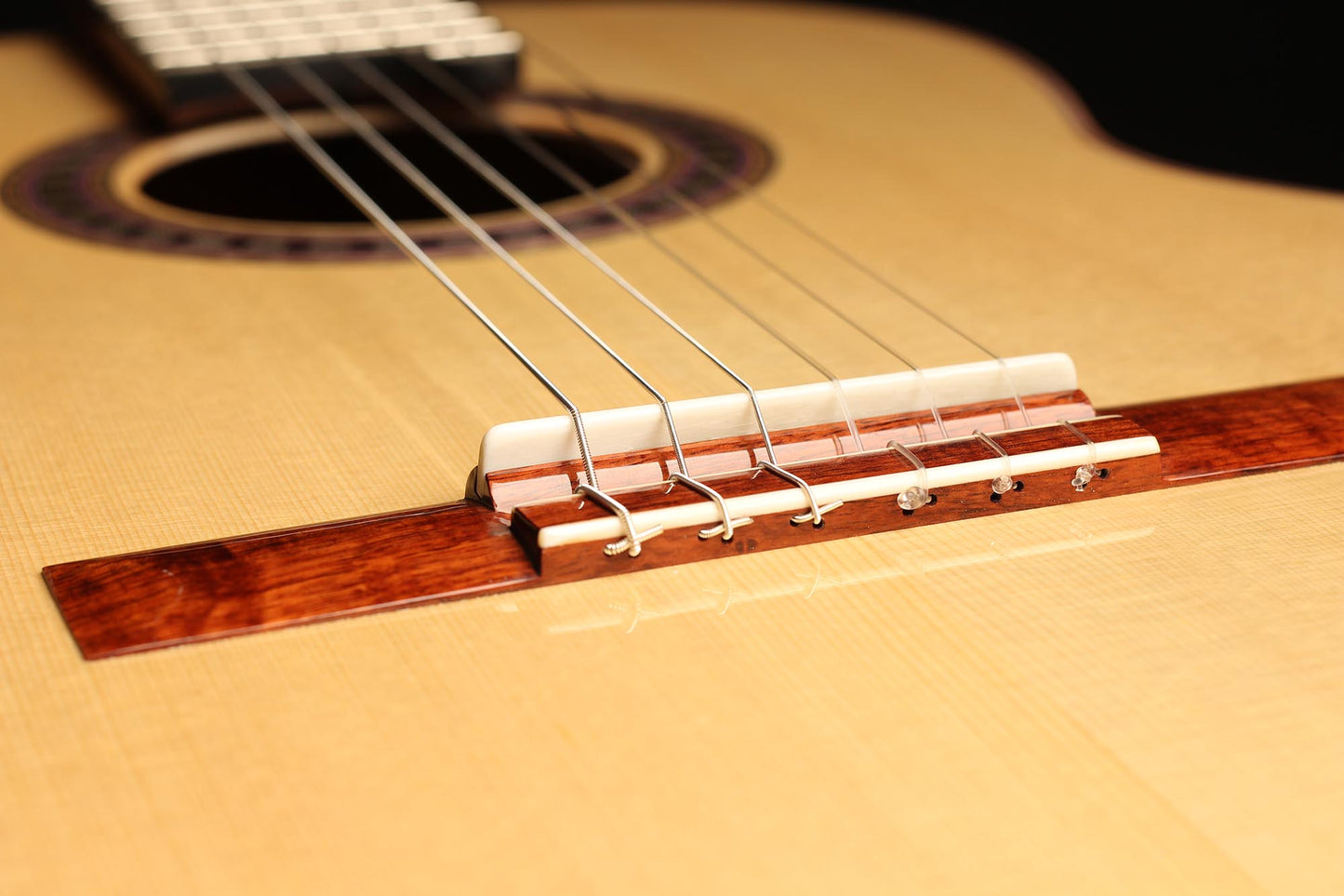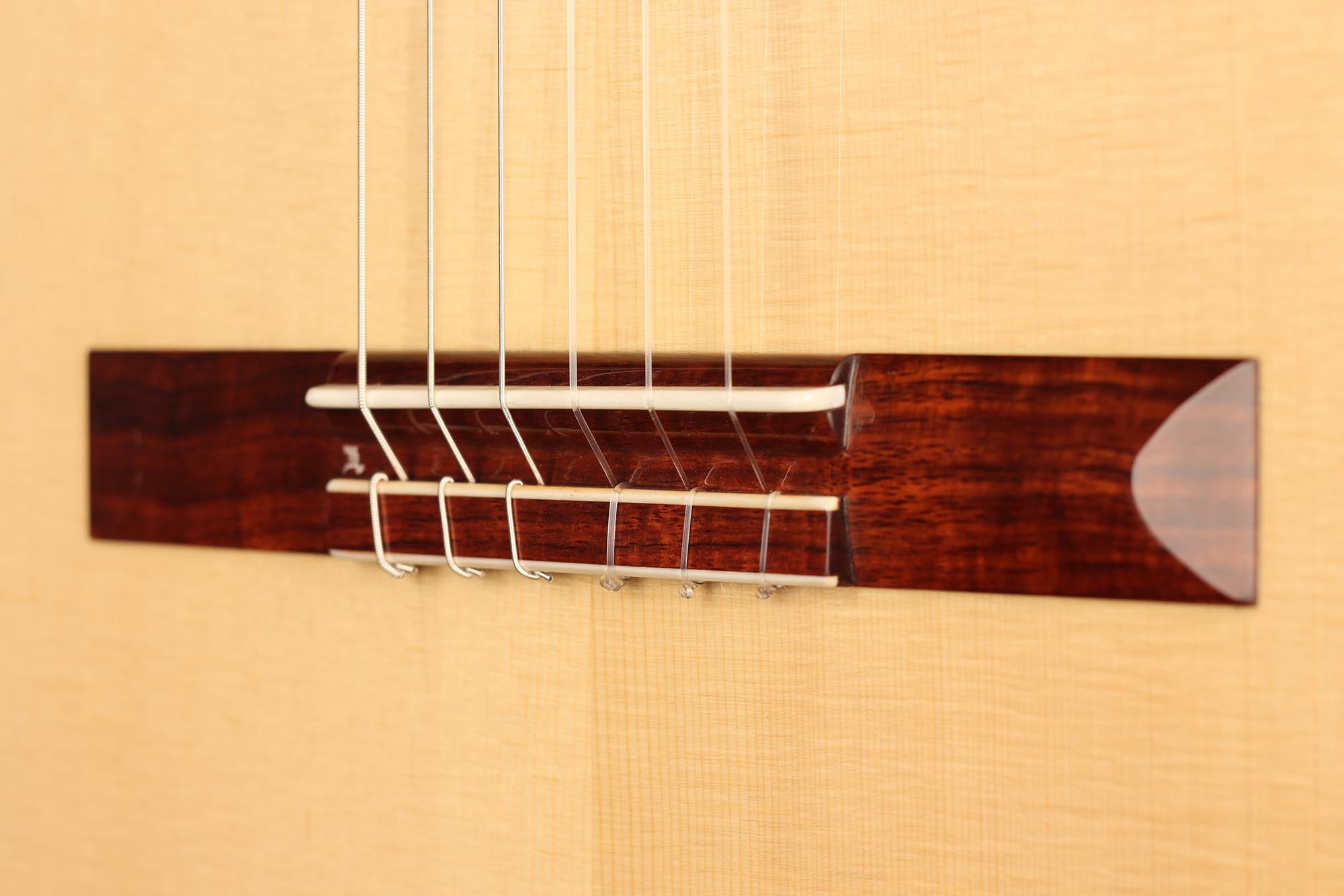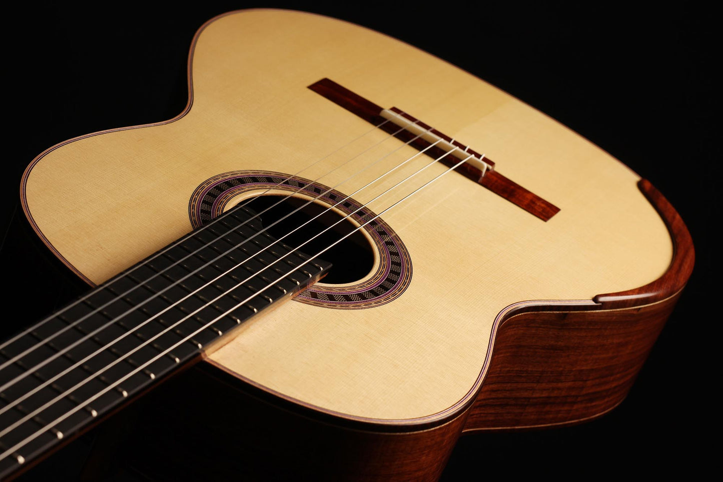 Die klassische Gitarre mit ihren weichen Nylonsaiten und ihrem charakteristischen Timbre ist zum Symbol der Kammermusik, der spanischen Tradition und des Konzertrepertoires geworden. Ihre moderne Form prägte Antonio de Torres im 19. Jahrhundert, indem er den Standard für Korpus, Fächerbeleistung und die 65-Zentimeter-Mensur setzte, die bis heute verwendet werden. Instrumente dieser Kategorie eröffnen eine reiche Palette von den feinen romantischen Miniaturen Tárregas bis zu den majestätischen Konzerten Rodrigos. Hier finden Sie Gitarren, die historische Kontinuität bewahren und zugleich zu neuen Interpretationen anregen.