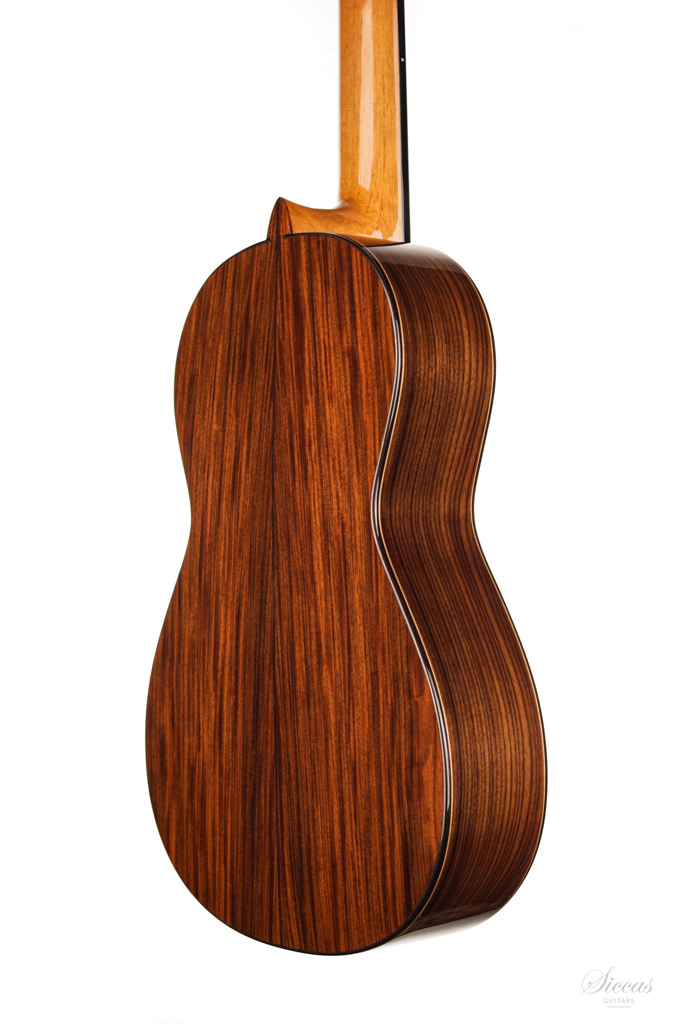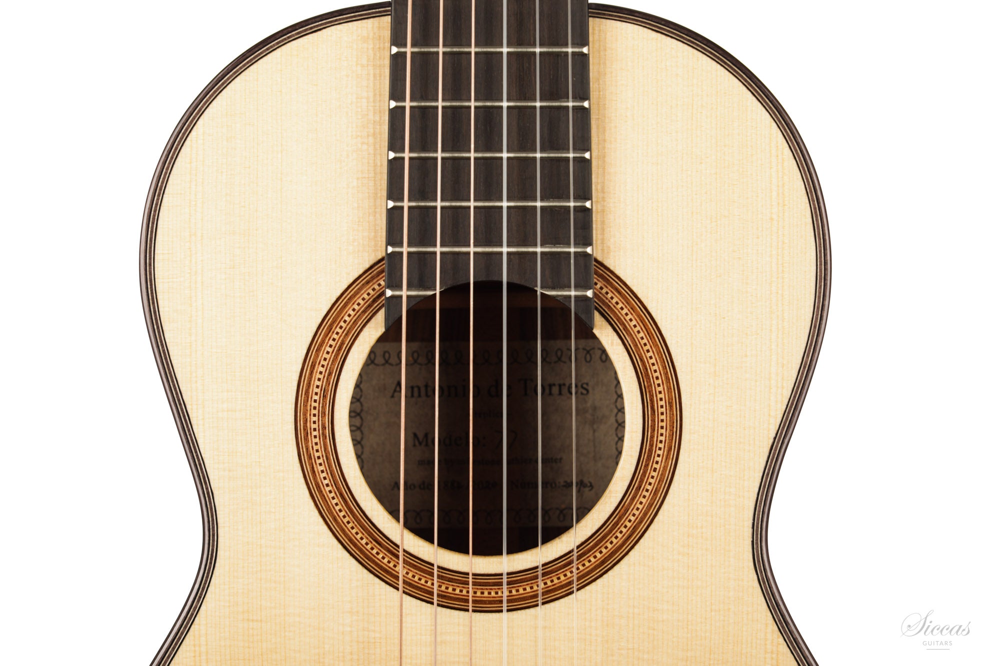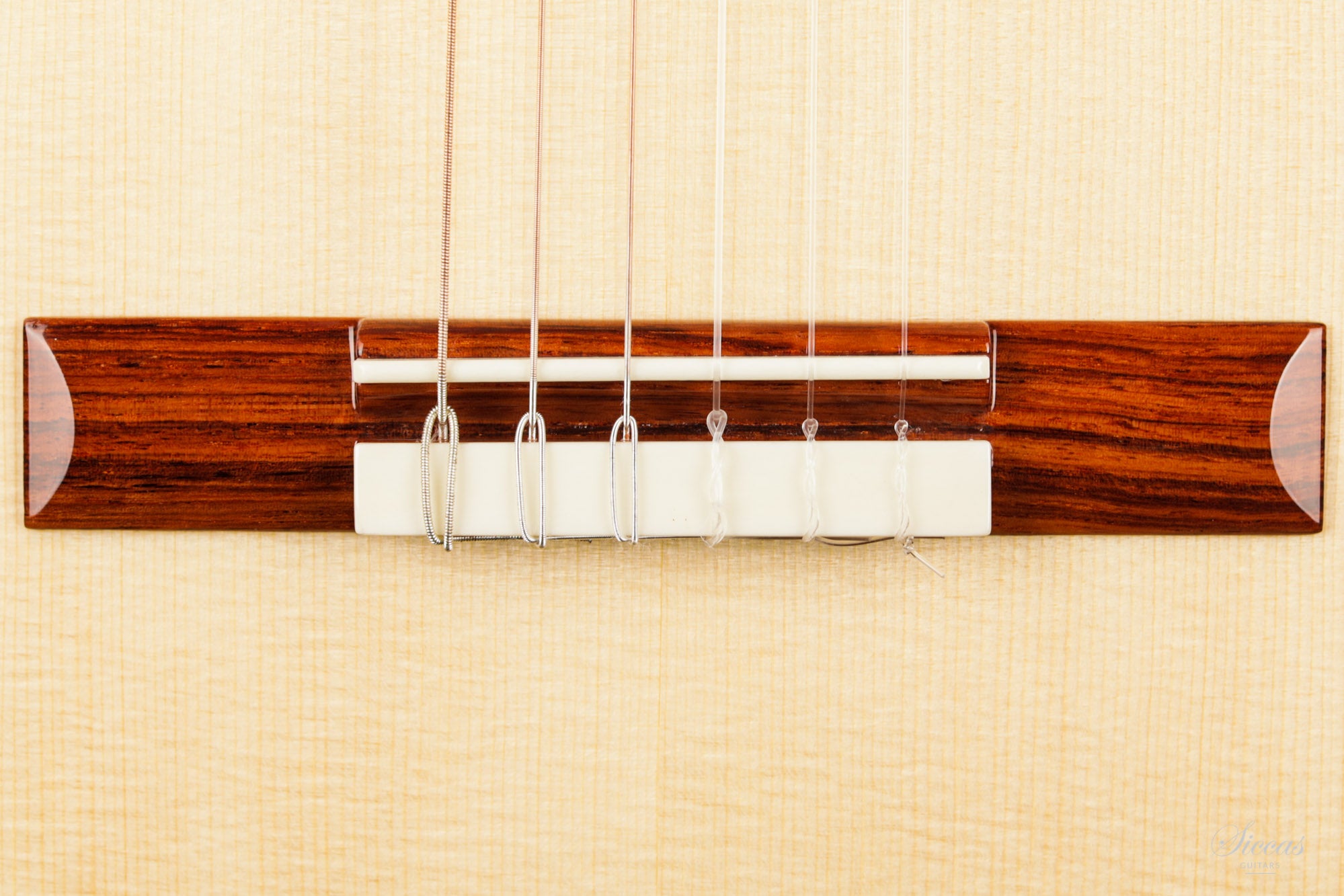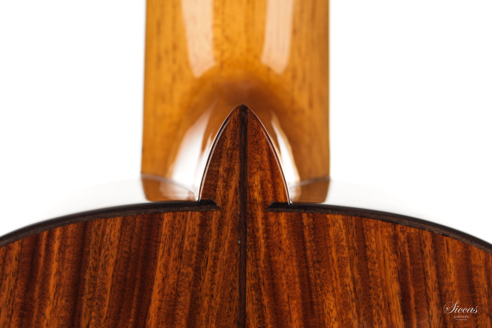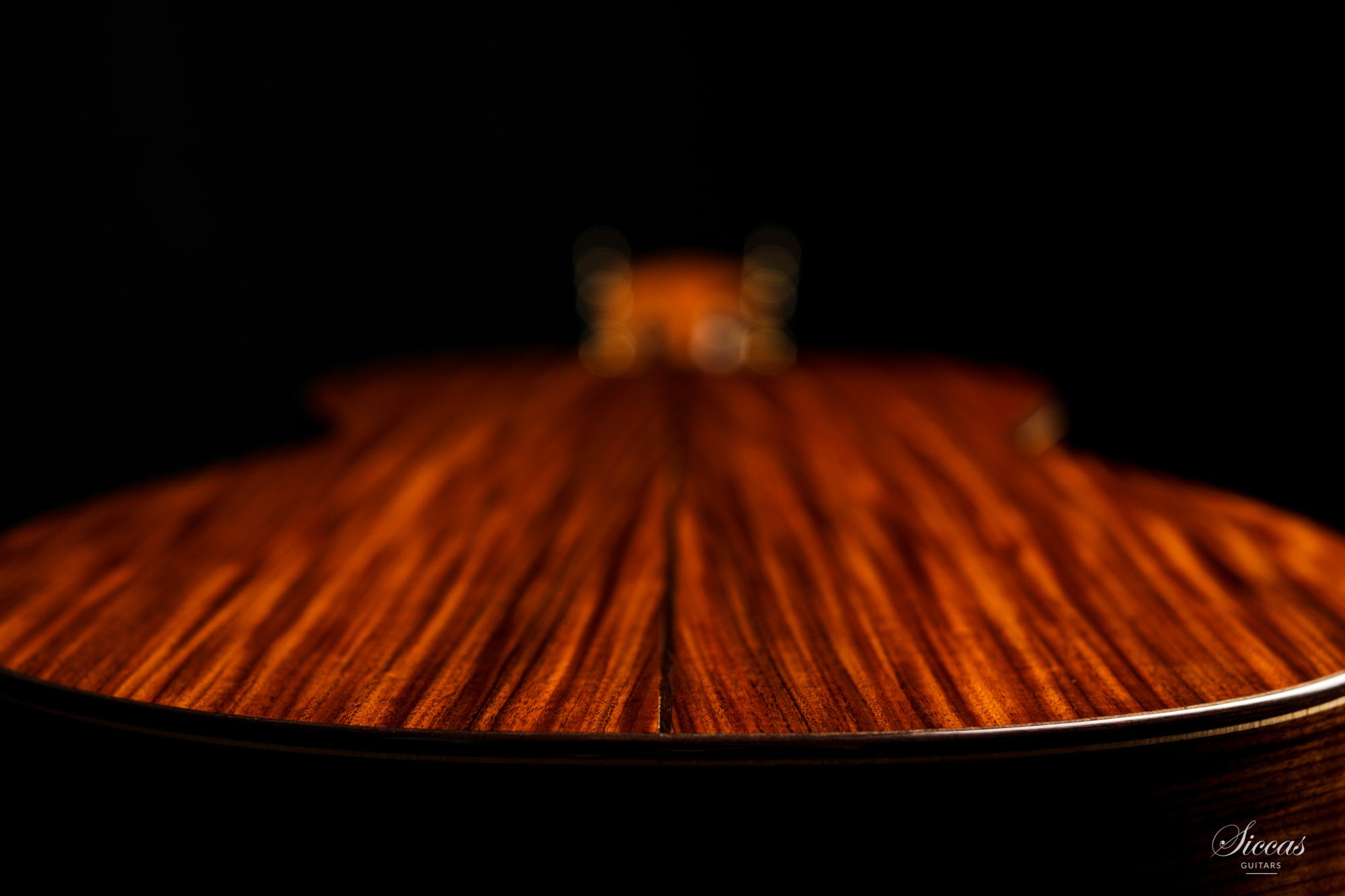Es ist eine wahre Freude diese schöne „Torres 77“ zu spielen. Dieses Modell hat einen kleineren Korpus und bietet ein einzigartiges Spielerlebnis. Sie ist leicht, reaktionsschnell und hat ein überraschend großes Klangvolumen. Für dieses handgefertigte „Torres 77“-Opus wurden Boden und Zargen aus Grandillo und ein Hochglanz-PU-Finish gewählt. Außerdem ist die Fichtendecke von hervorragender Qualität und hat eine sehr schöne gehaselte Maserung.