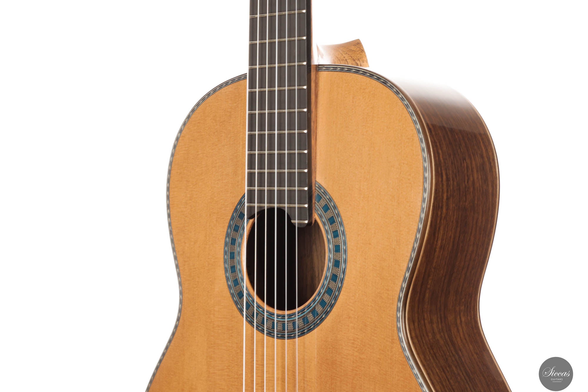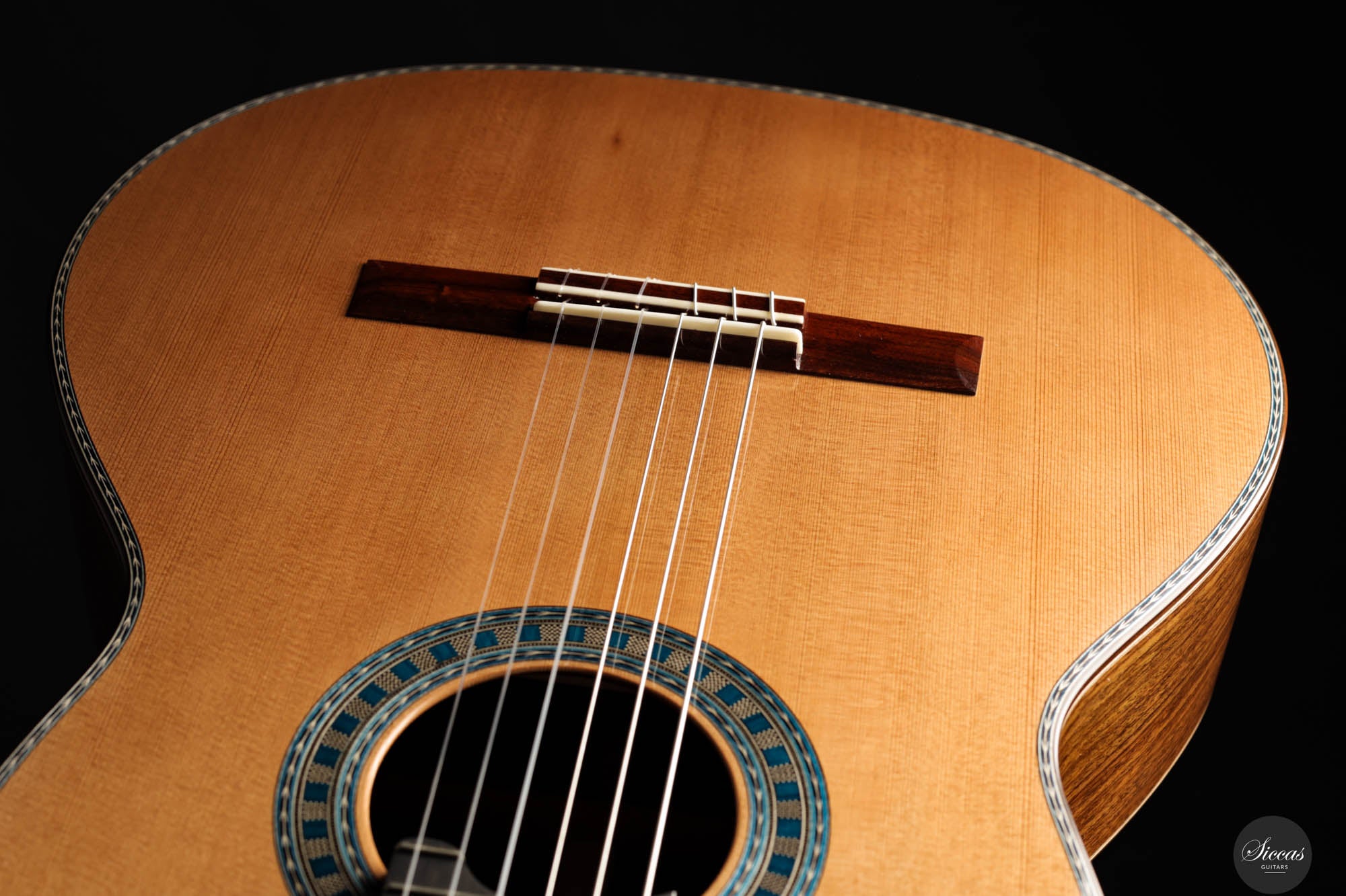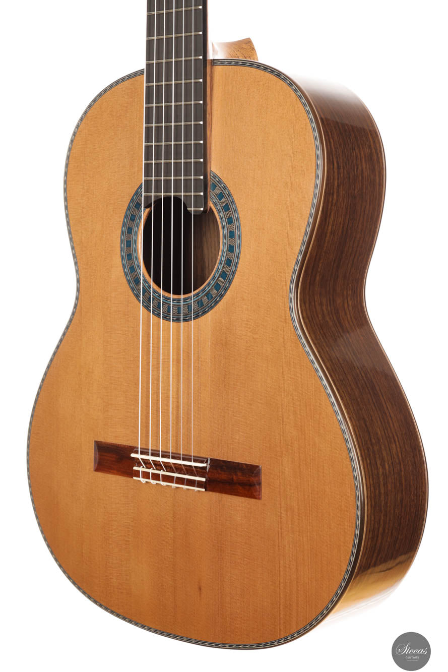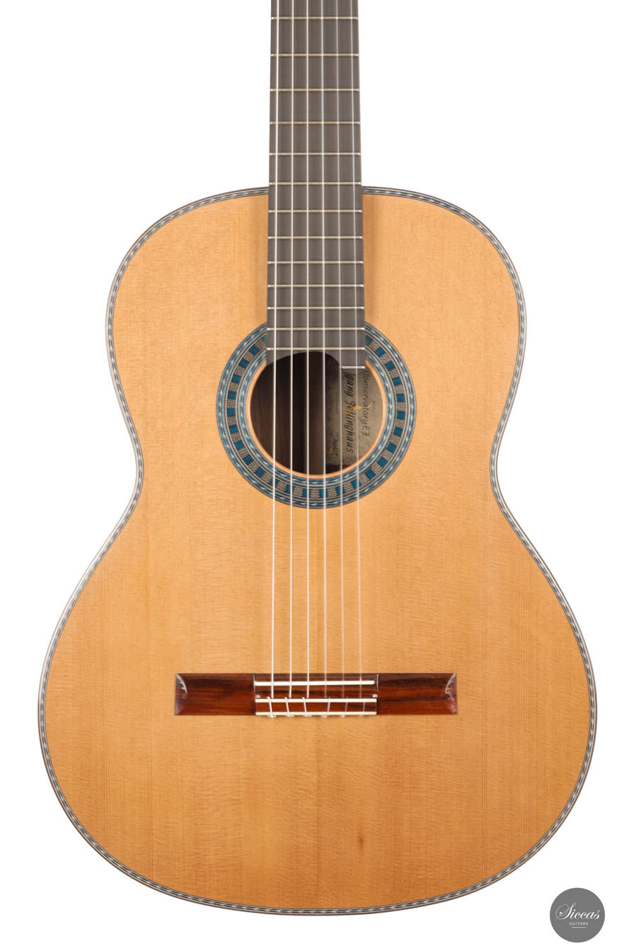 This model has been developed as a cost-effective alternative to the more elaborate instruments from the Jellinghaus line and offers high sound quality and best playability e.g. for students or guitarists with a limited budget. The cedar top offers a strong yet colorful tone, incredibly sensitive to vibrato and changes in dynamics. It is therefore an expressive and reliable guitar. The elevated fretboard is a nifty feature that enhances the playability above the 12th fret.
