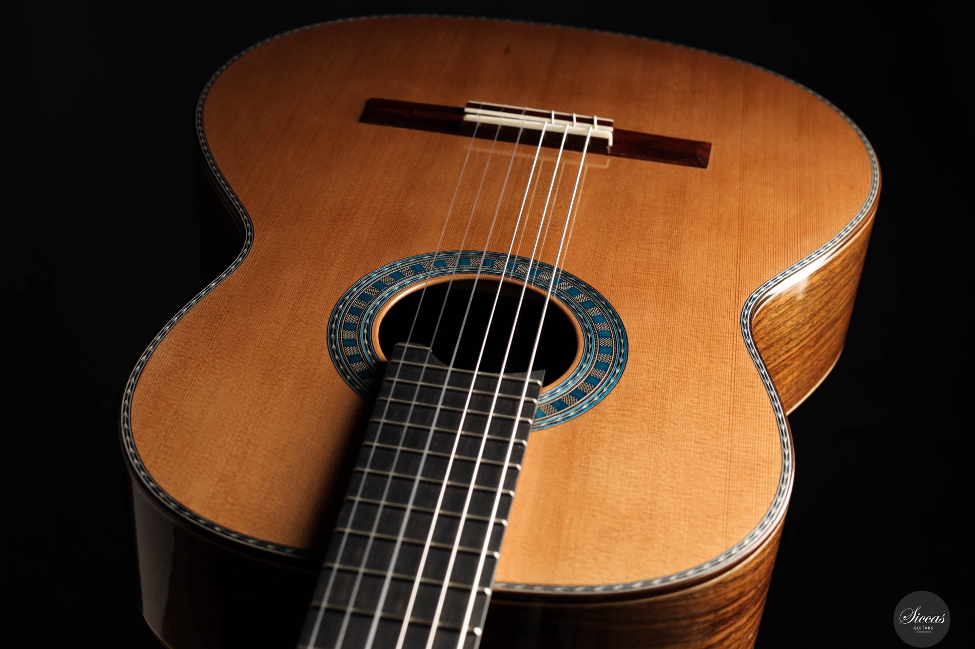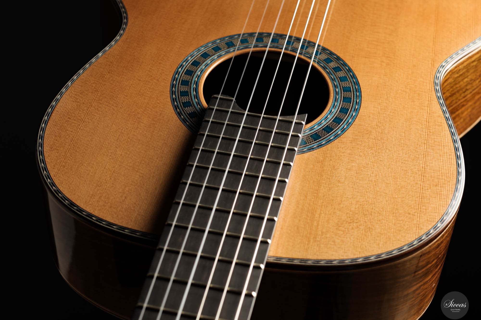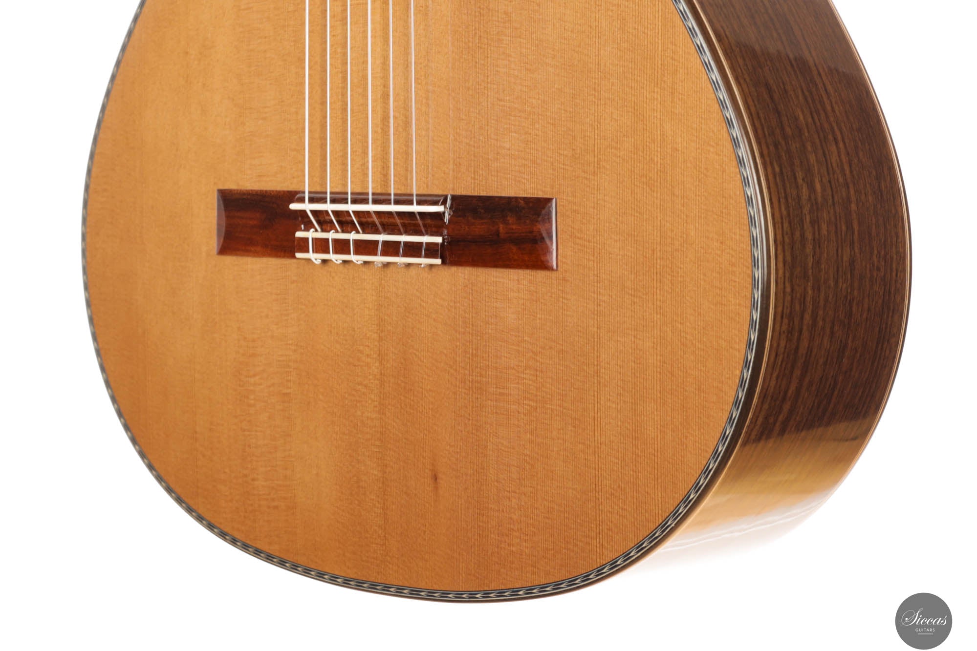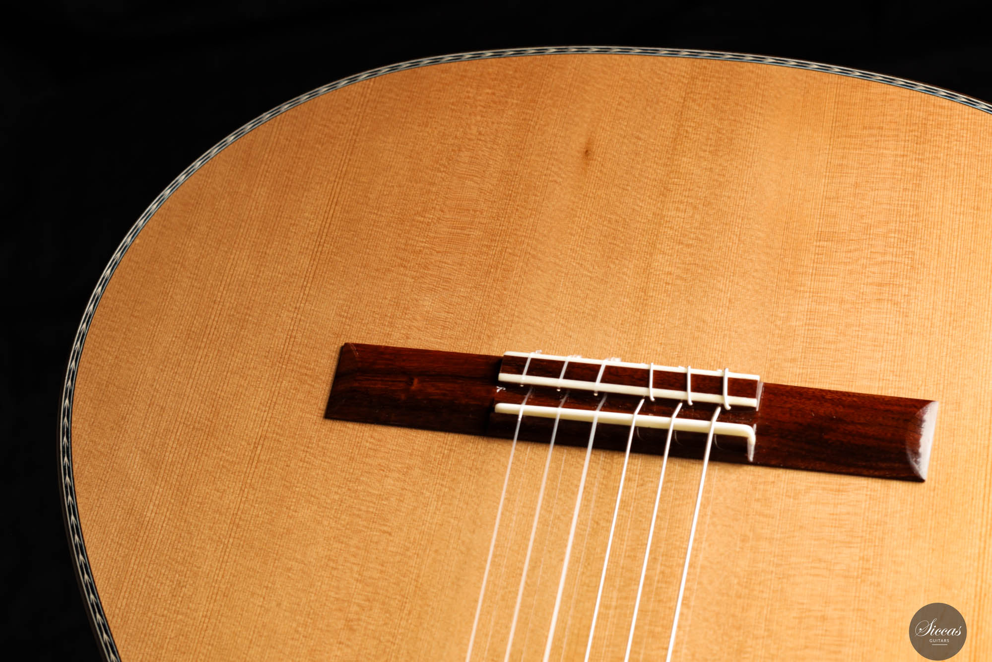 This model has been developed as a cost-effective alternative to the more elaborate instruments from the Jellinghaus line and offers high sound quality and best playability e.g. for students or guitarists with a limited budget. The cedar top offers a strong yet colorful tone, incredibly sensitive to vibrato and changes in dynamics. It is therefore an expressive and reliable guitar. The elevated fretboard is a nifty feature that enhances the playability above the 12th fret.