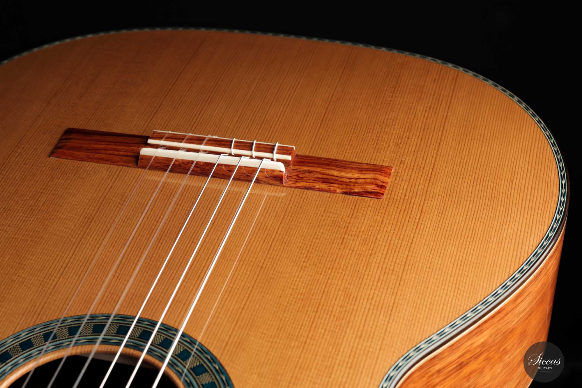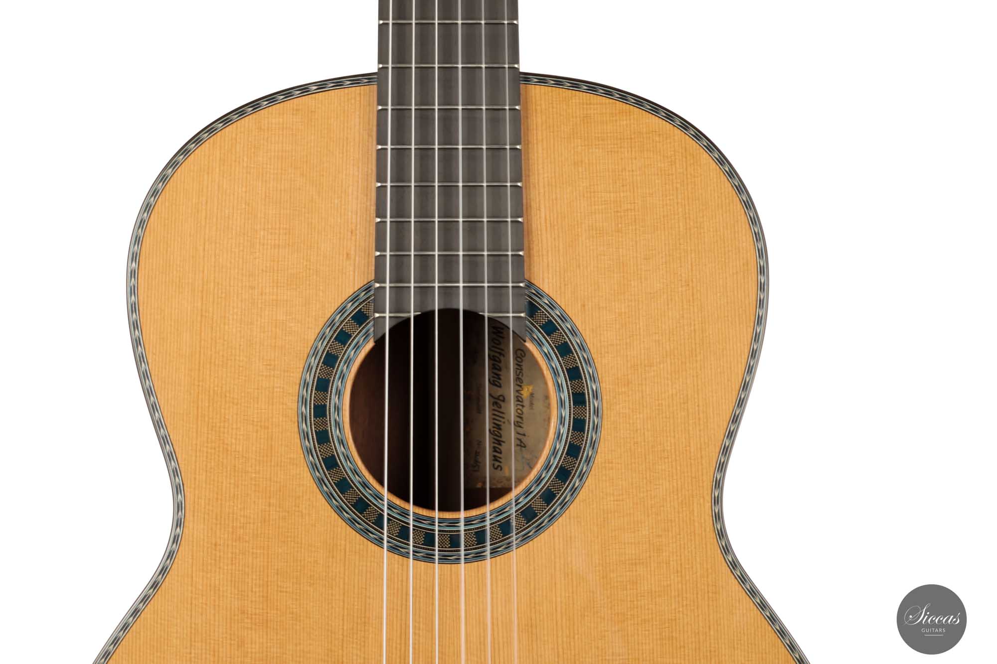 This model has been developed as a cost-effective alternative to the more elaborate instruments from the Jellinghaus manufactory and offers high sound quality and best playability e.g., for students or guitarists with a limited budget. The cedar top offers a powerful yet colourful tone, incredibly sensitive to vibrato and changes in dynamics. It is therefore an expressive and reliable guitar.