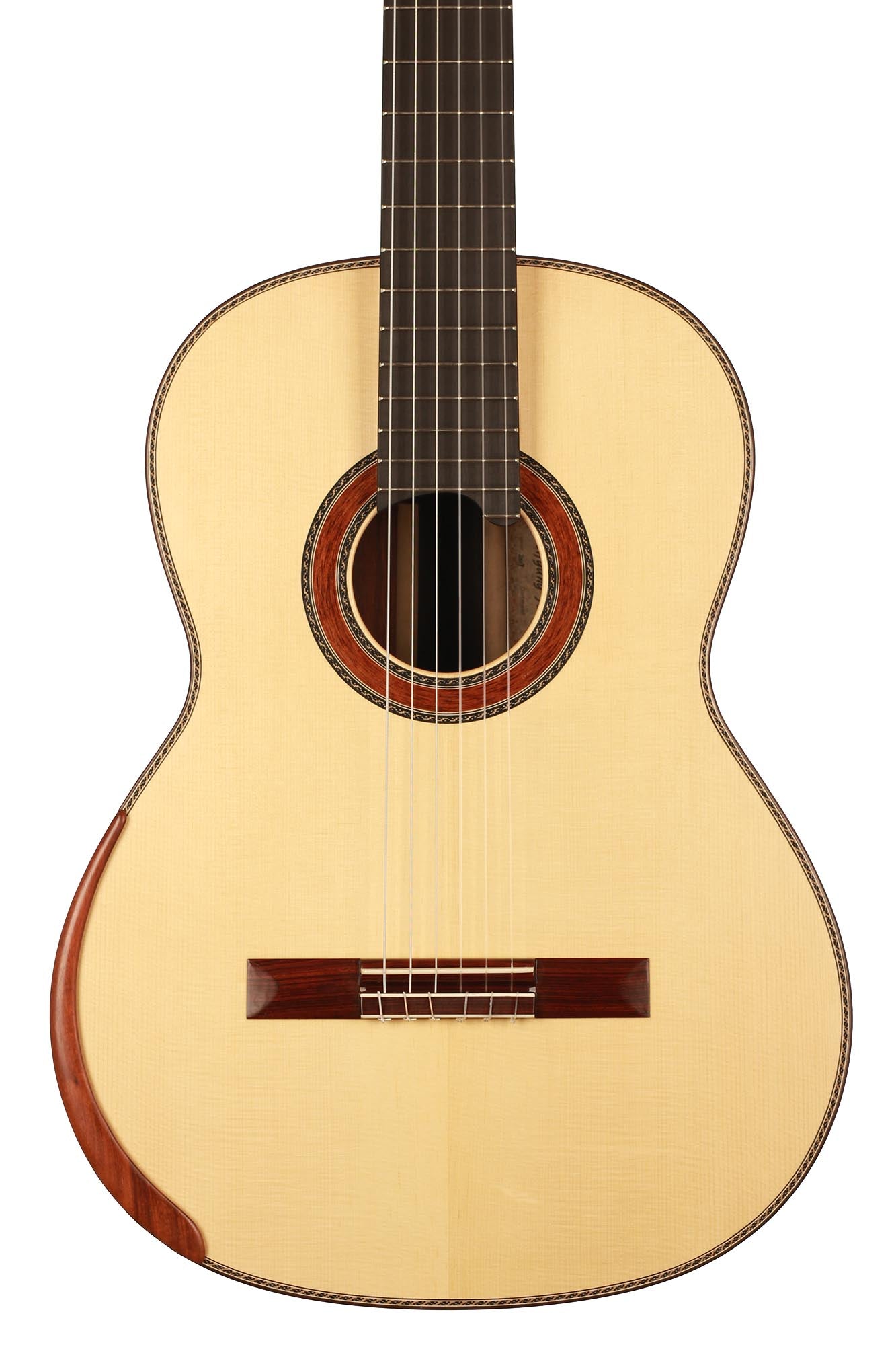 His latest series is the Wolfgang Jellinghaus Signature. This is a very modern guitar with some interesting features, such as the floating fingerboard, which is not fixed to the top, so this part of the top vibrates freely and contributes to the overall sound.