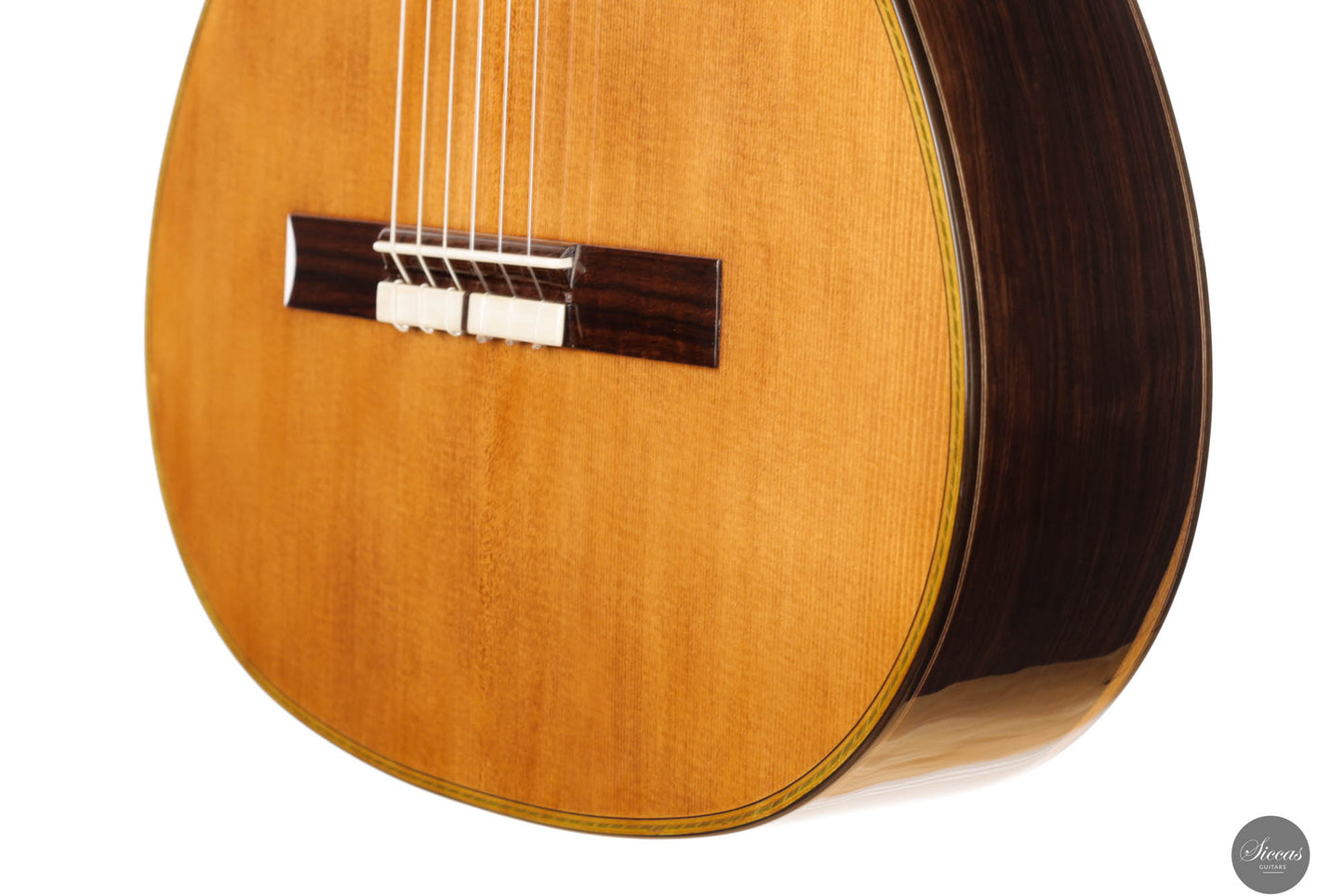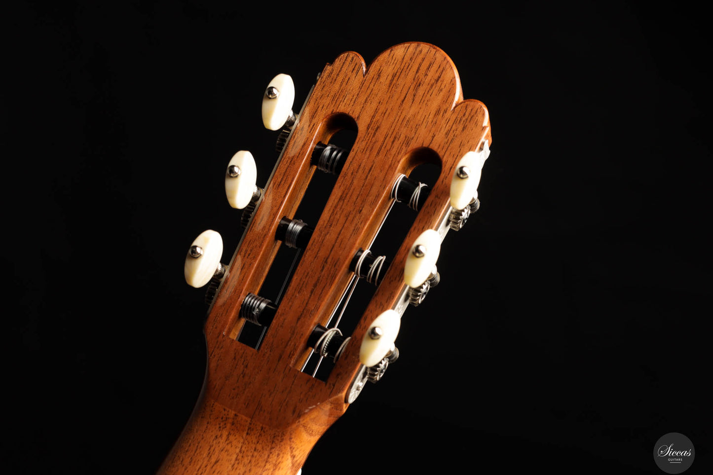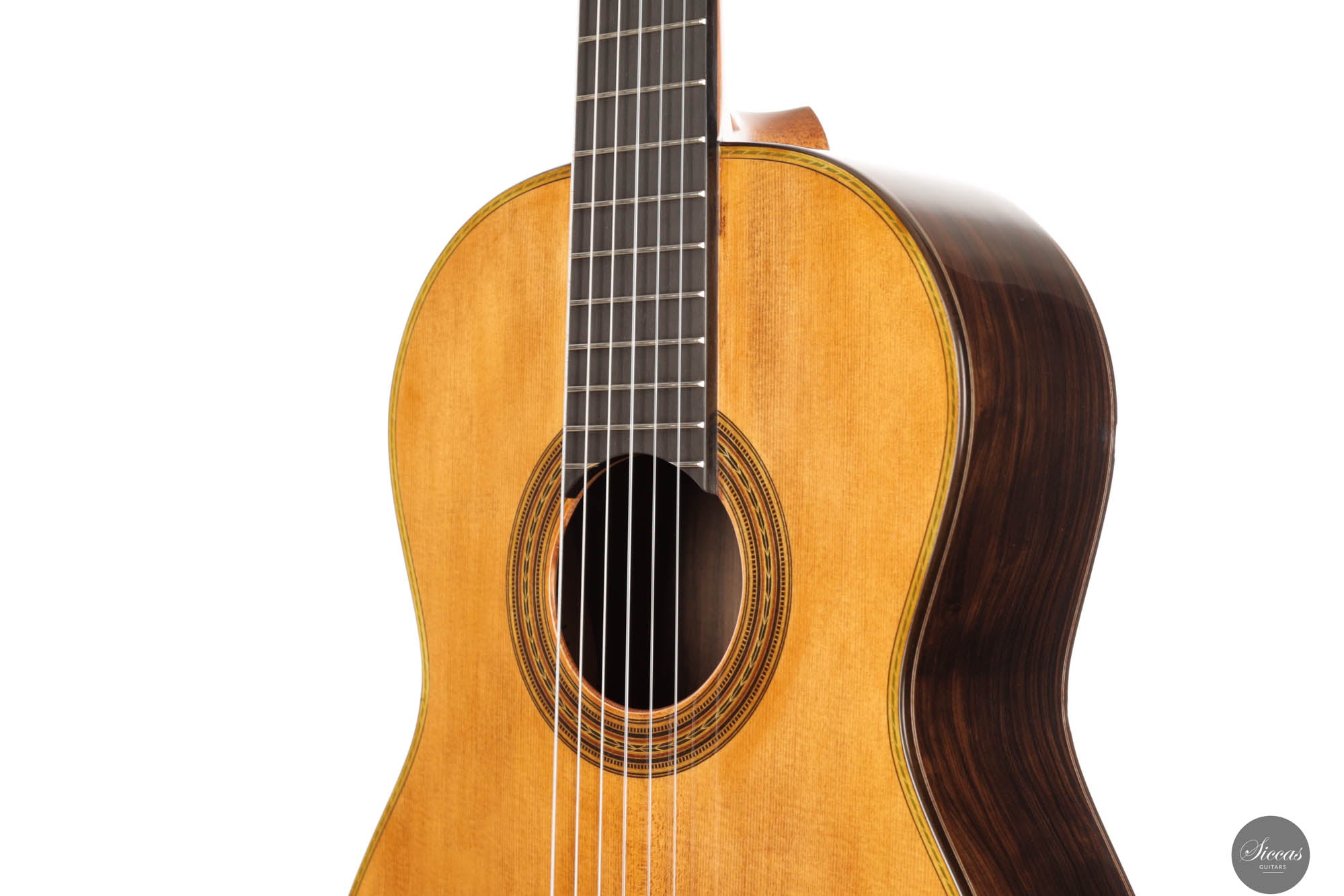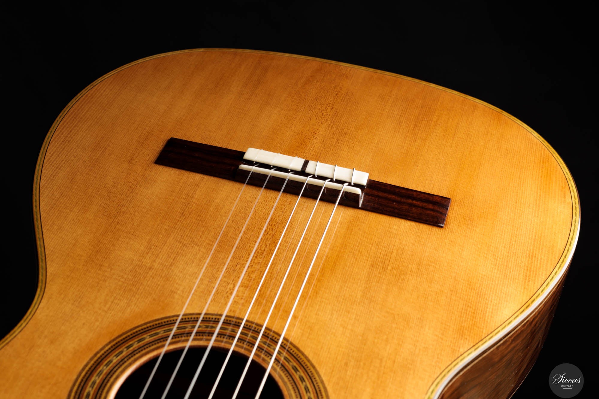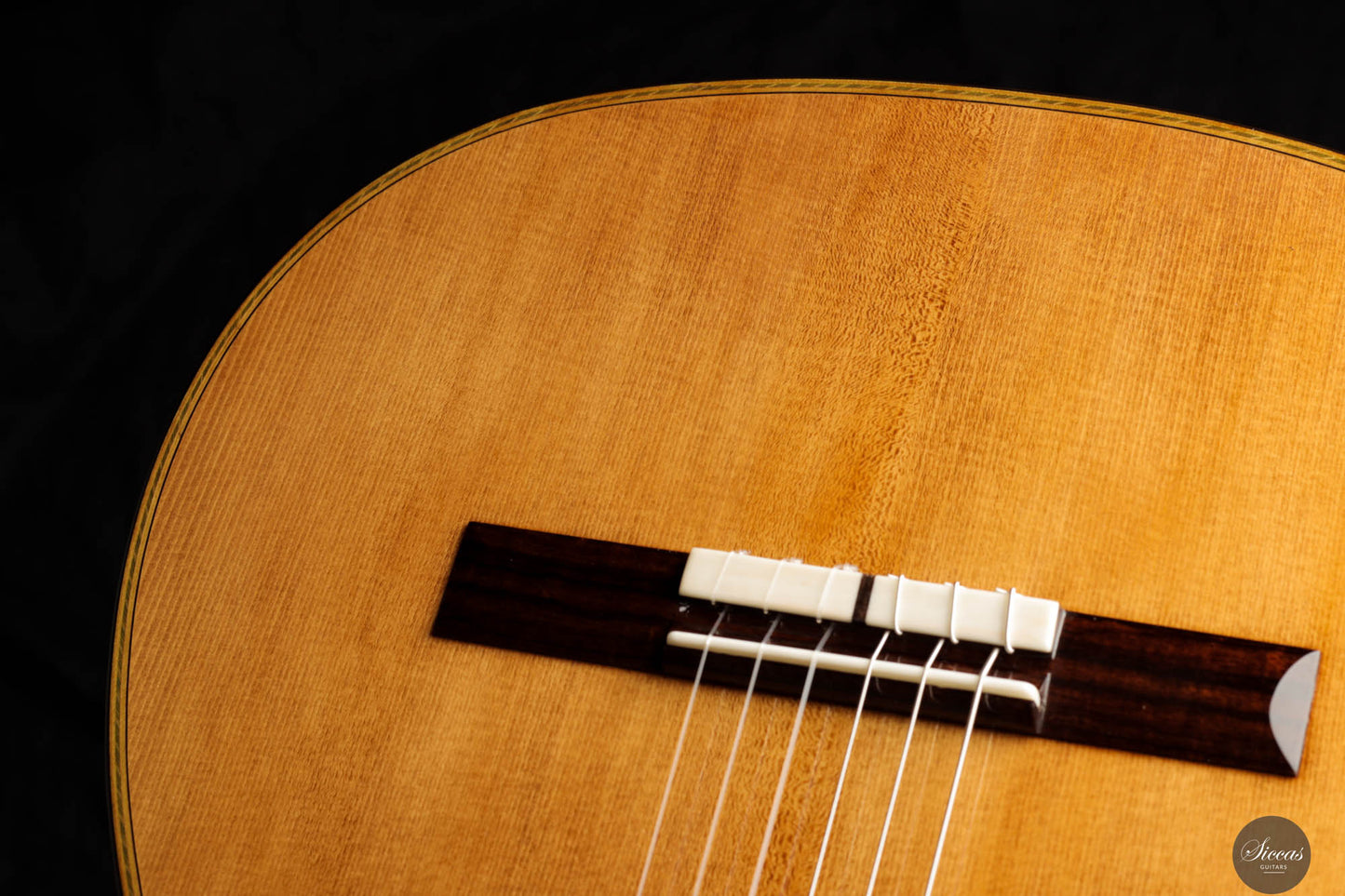 Inspired by the iconic designs of Francisco Simplico, this new model from Jellinghaus is a captivating blend of traditional artistry and contemporary craftsmanship. Paying homage to the legendary guitar maker, this instrument incorporates key elements of Simplico's style, resulting in a guitar that resonates with the old Spanish characteristics beloved by many. Its quick response and great balance are standout features, ensuring a playing experience that is both dynamic and satisfying. The guitar's aesthetic and tonal qualities reflect a deep understanding and appreciation of classical guitar heritage, making it an appealing choice for those who cherish the timeless sound and feel of traditional Spanish guitars, while enjoying the benefits of modern luthiery techniques.