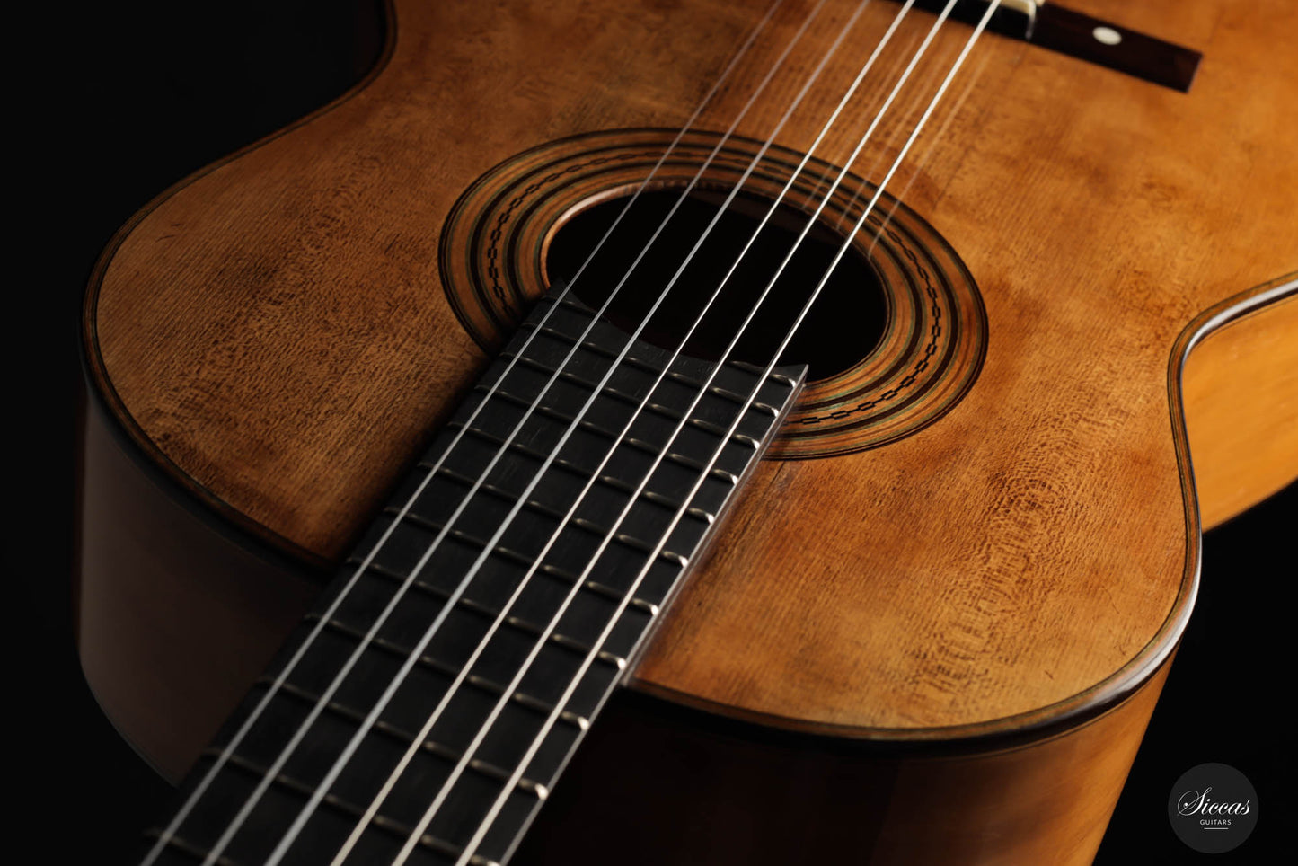 Model 114 Torres is a tribute to Antonio de Torre’s guitar of the second construction period, played by Tárrega himself. The original was built in 1888 and this homage is made in a gorgeous way full of details that are featured on the original guitar.