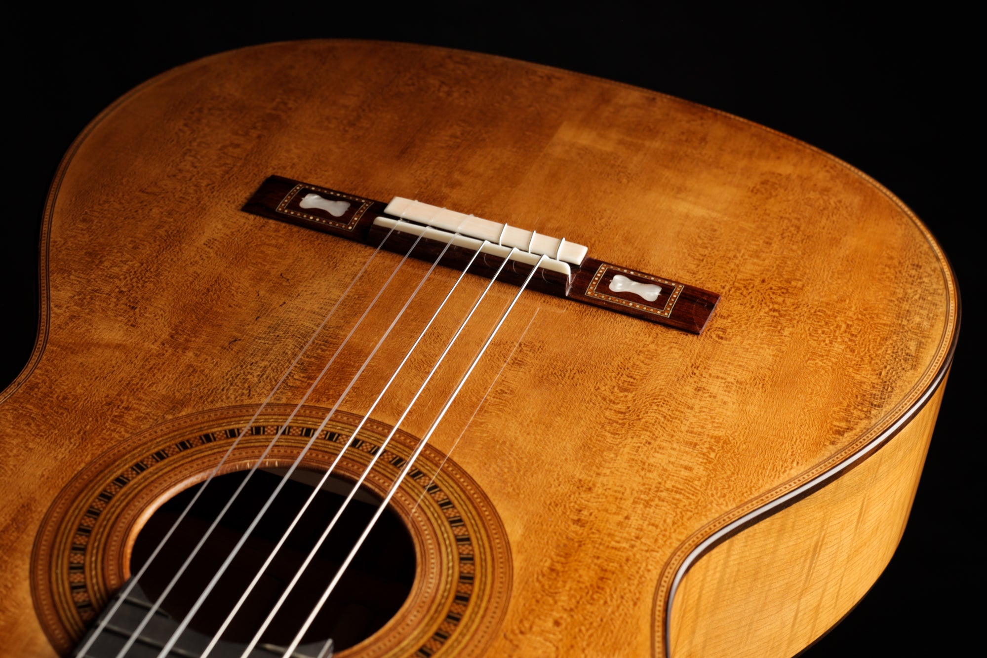 This beautiful guitar is a replica of guitar number 43, which the great master Antonio de Torres built in 1883. It was built in Antonio de Torres' second era, also called Segunda epoca, and is a specially decorated instrument with a back made of stunning flamed maple. As always, a great deal of effort was put into building a faithful first quality copy in Wolfgang Jellinghaus' workshop, and the result is simply magnificent.