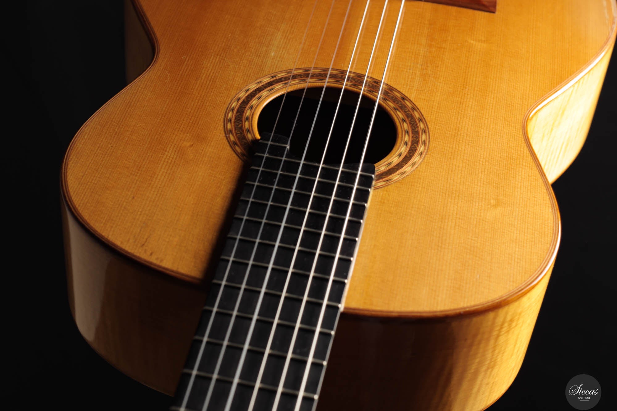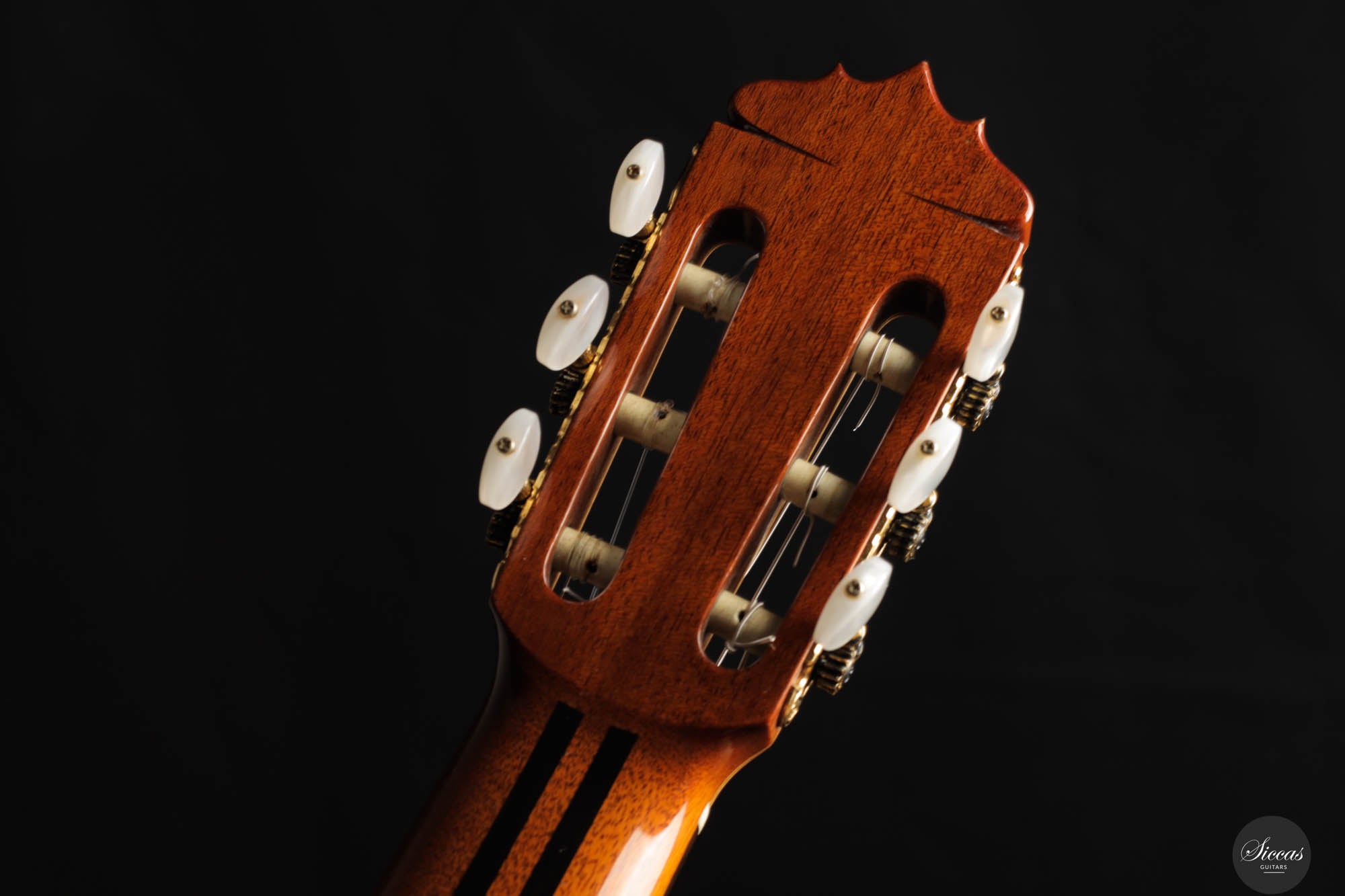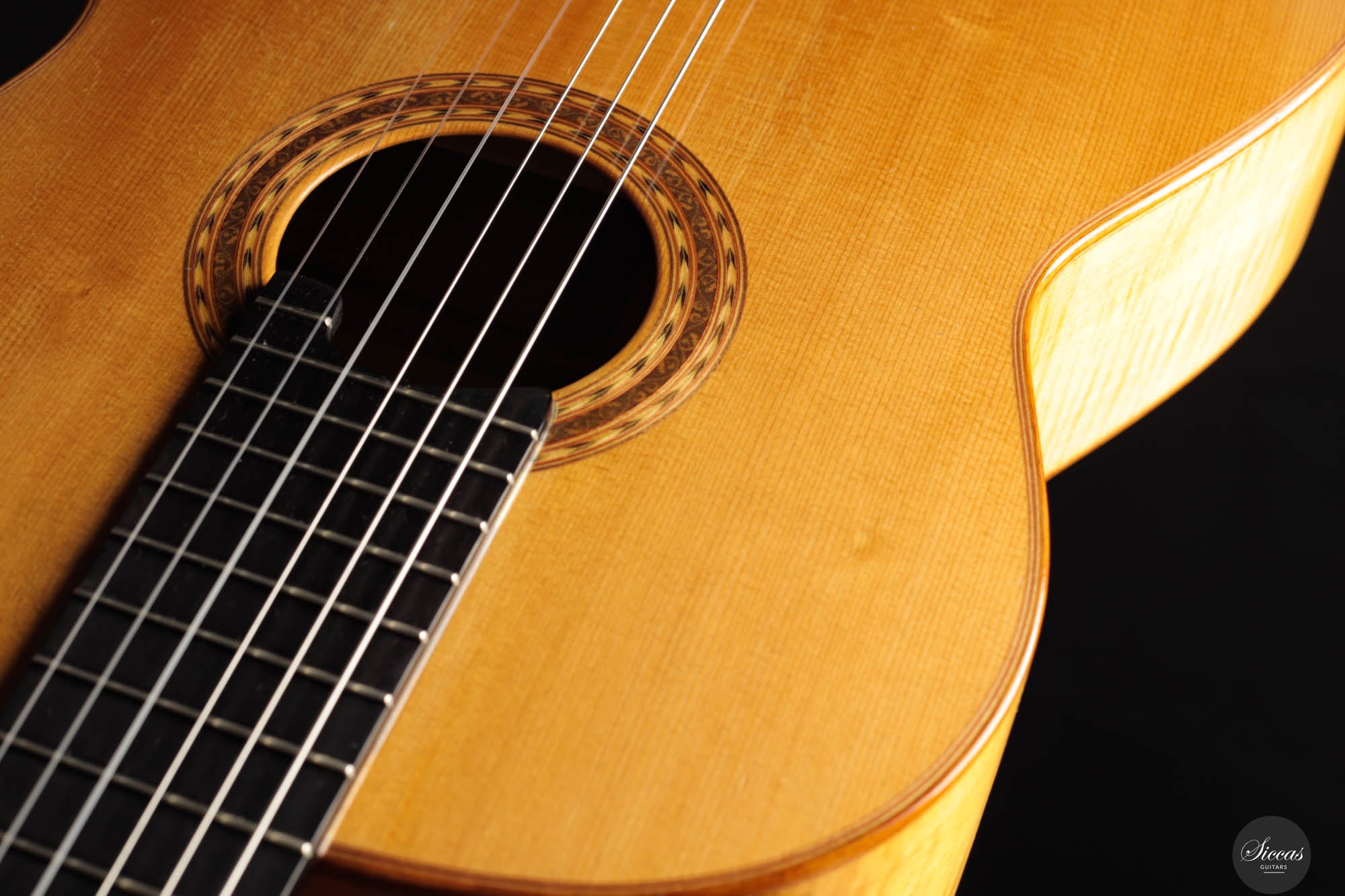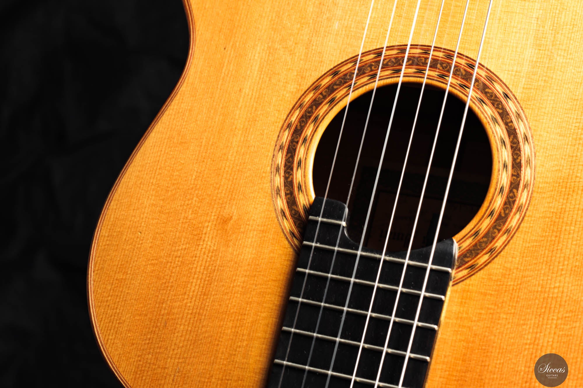 Die Yuichi Imai Gitarre von 1992 zeigt die hohe Kunstfertigkeit eines der bedeutendsten japanischen Gitarrenbauer. Mit ihrem Boden und Zargen aus edlem Ahorn knüpft sie klanglich an die Tradition der Madrider Schule an und verbindet kraftvolle Projektion mit Wärme und lyrischer Ausstrahlung. Sie reagiert sensibel auf feinste Dynamik und erlaubt es, jede Nuance und Stimme klar hervorzuheben. Trotz ihres Alters befindet sie sich in ausgezeichnetem Zustand und weist nur leichte Gebrauchsspuren auf. Dank des integrierten elektronischen Systems eignet sie sich gleichermaßen für den Konzertsaal wie für flexible Bühnensituationen.