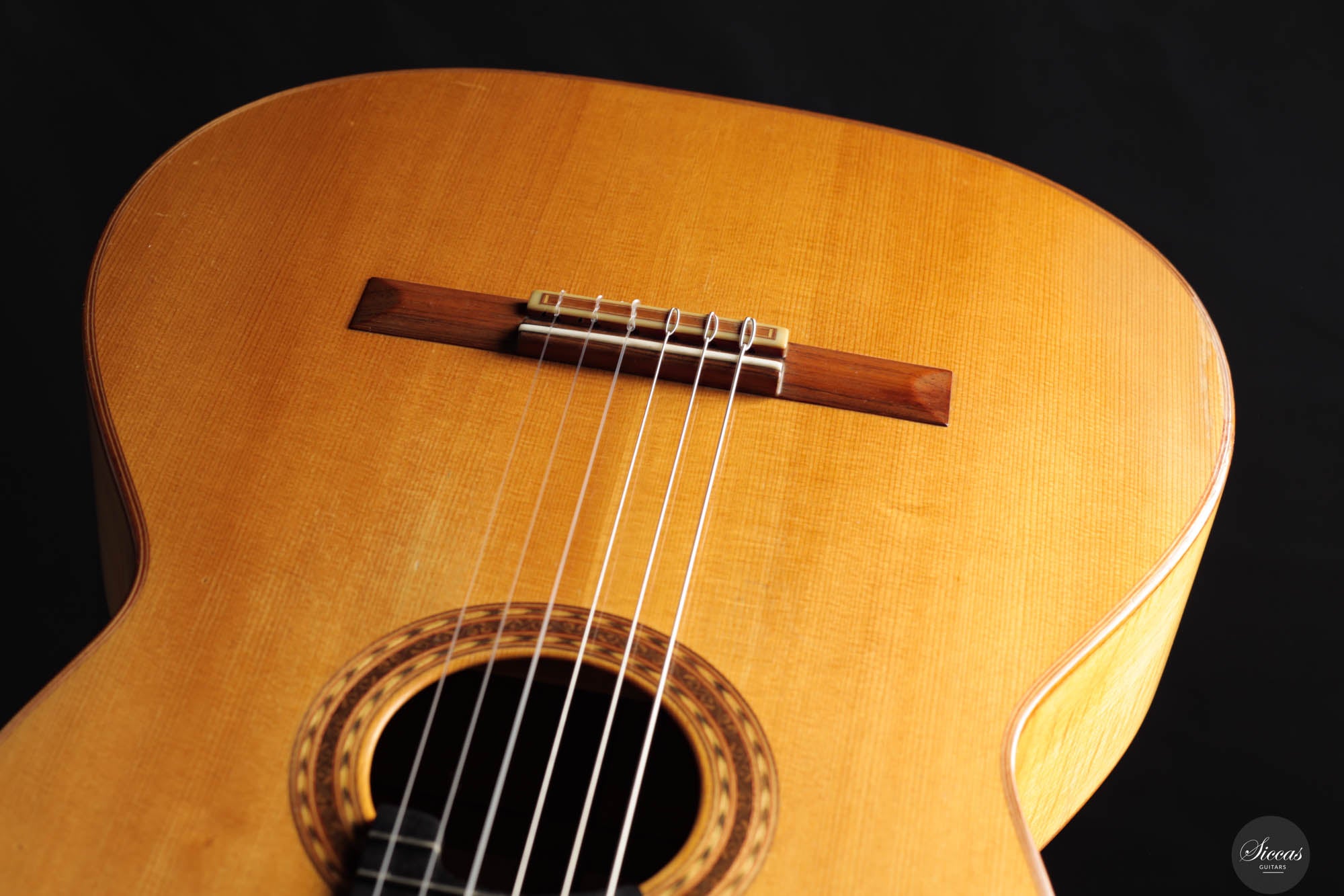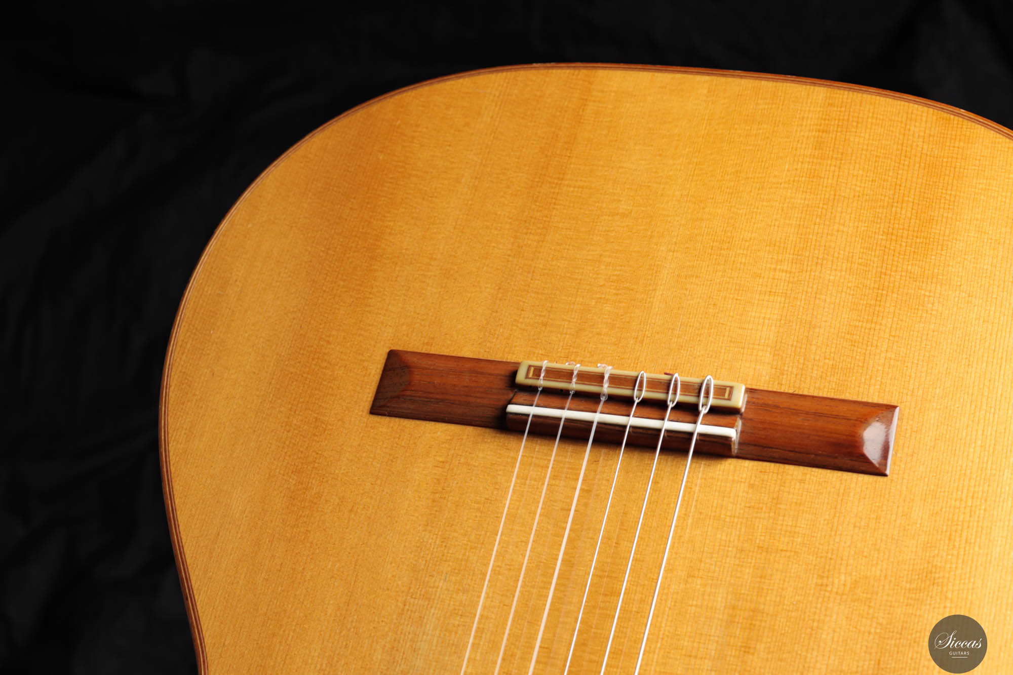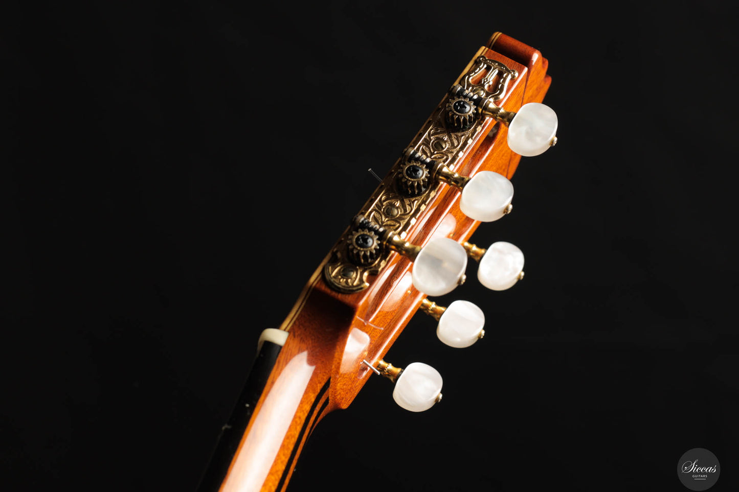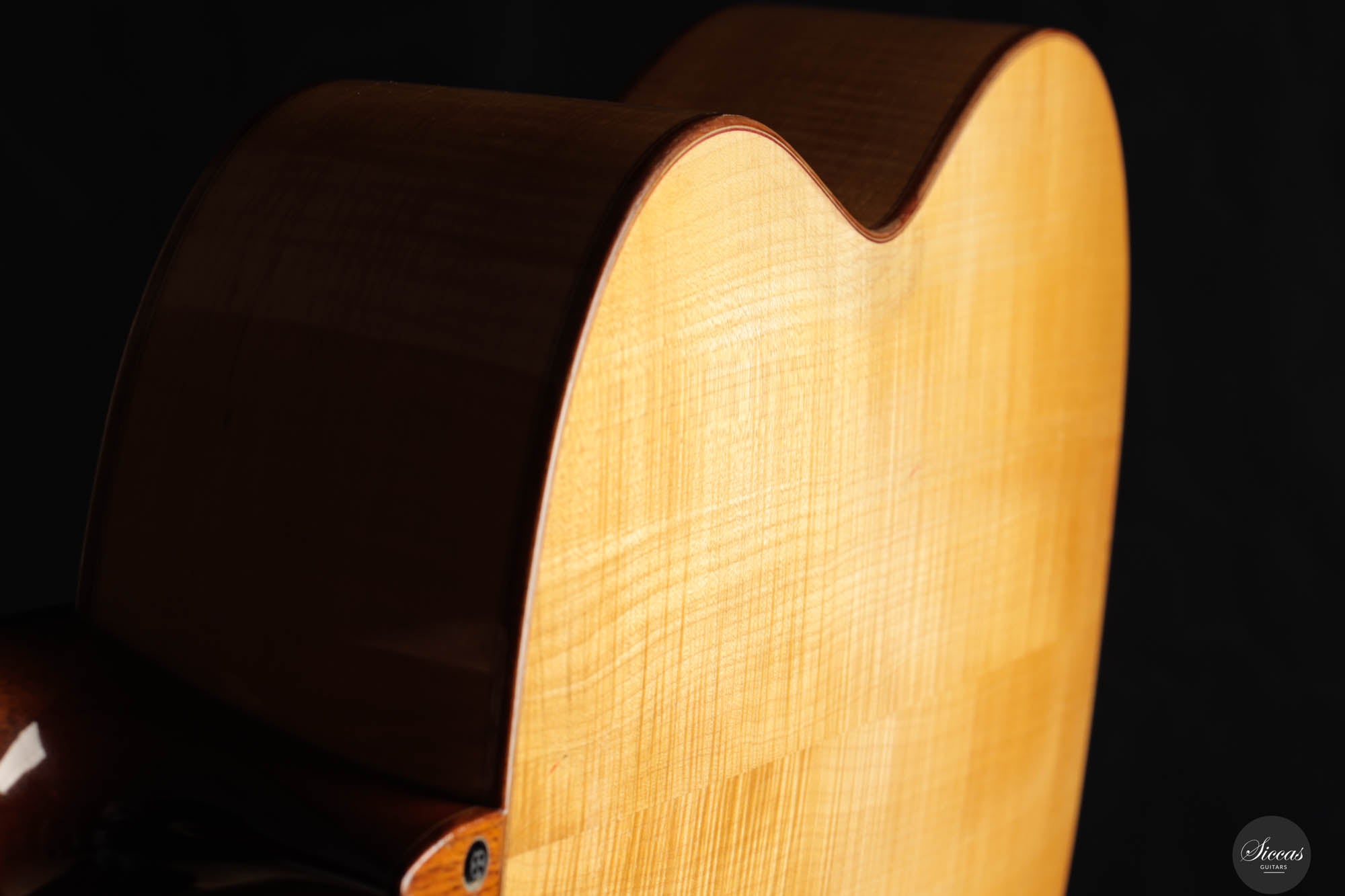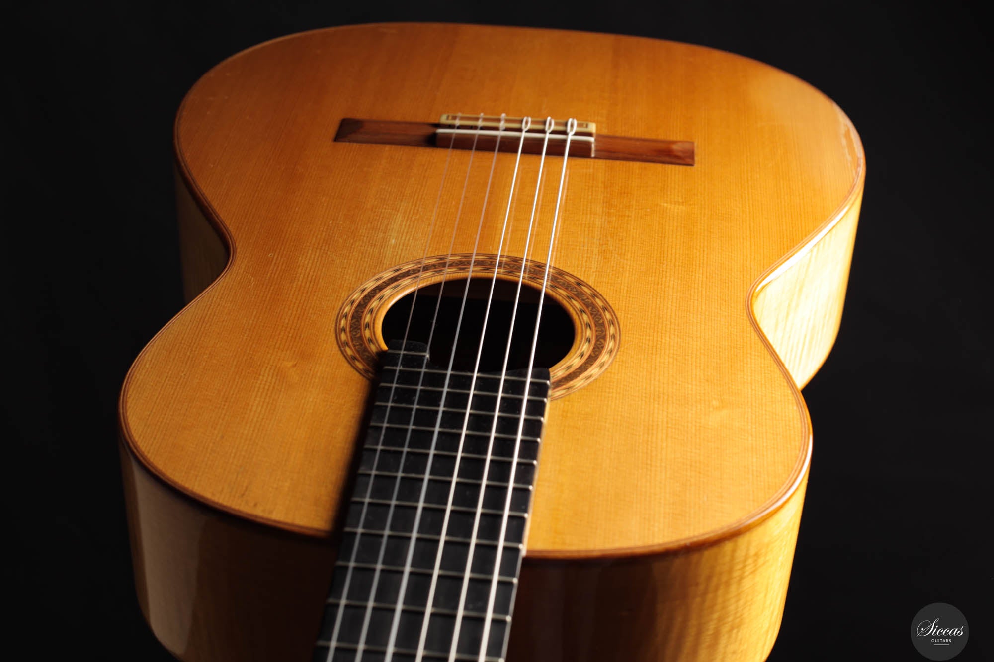 Die Yuichi Imai Gitarre von 1992 zeigt die hohe Kunstfertigkeit eines der bedeutendsten japanischen Gitarrenbauer. Mit ihrem Boden und Zargen aus edlem Ahorn knüpft sie klanglich an die Tradition der Madrider Schule an und verbindet kraftvolle Projektion mit Wärme und lyrischer Ausstrahlung. Sie reagiert sensibel auf feinste Dynamik und erlaubt es, jede Nuance und Stimme klar hervorzuheben. Trotz ihres Alters befindet sie sich in ausgezeichnetem Zustand und weist nur leichte Gebrauchsspuren auf. Dank des integrierten elektronischen Systems eignet sie sich gleichermaßen für den Konzertsaal wie für flexible Bühnensituationen.