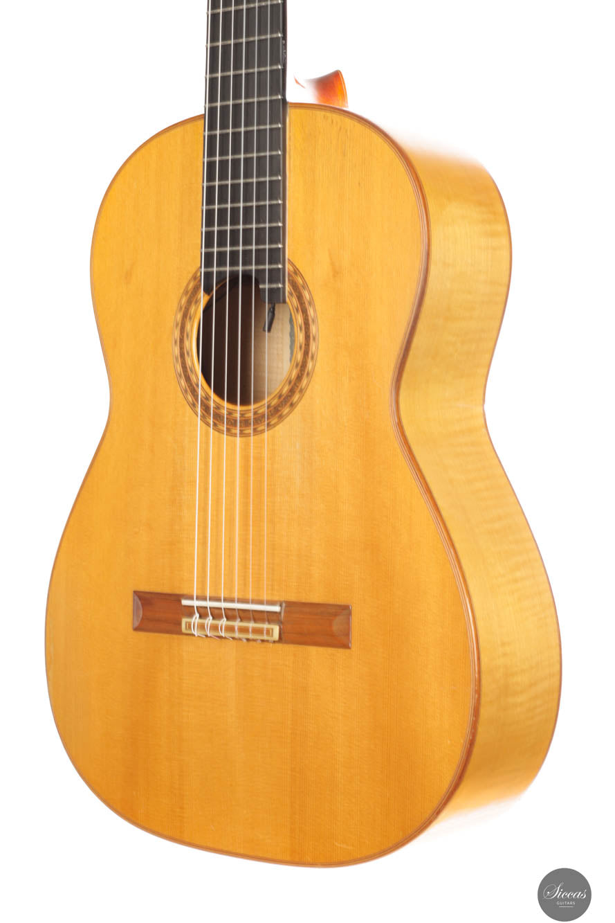 Diese beeindruckende Yuichi Imai Gitarre aus dem Jahr 1992 ist ein herausragendes Beispiel für die Kunstfertigkeit eines der angesehensten japanischen Gitarrenbauer. In Europa hochgeschätzt und von einigen der besten Gitarristen gespielt, sind Yuichi Imai Gitarren für ihre außergewöhnliche Qualität und Klangästhetik bekannt. Dieses spezielle Exemplar ist besonders selten, da es über Boden und Zargen aus wunderschön gearbeitetem Ahorn verfügt. Klanglich erinnert sie an die Tradition der Madrider Gitarrenschule und bietet einen kraftvollen, zugleich warmen und lyrischen Ton. Als gepflegtes, bereits gespieltes Instrument befindet sich diese Gitarre in einem ausgezeichneten Zustand mit nur minimalen Gebrauchsspuren. Sie lässt sich spielerisch leicht kontrollieren und ermöglicht es dem Gitarristen, jede Klangnuance mühelos herauszuarbeiten. Eine seltene Gelegenheit, eine hochwertige Gitarre zu einem äußerst attraktiven Preis zu erwerben. Darüber hinaus verfügt dieses Instrument über ein elektronisches System, das es noch besser für alle Spielbedingungen geeignet macht.