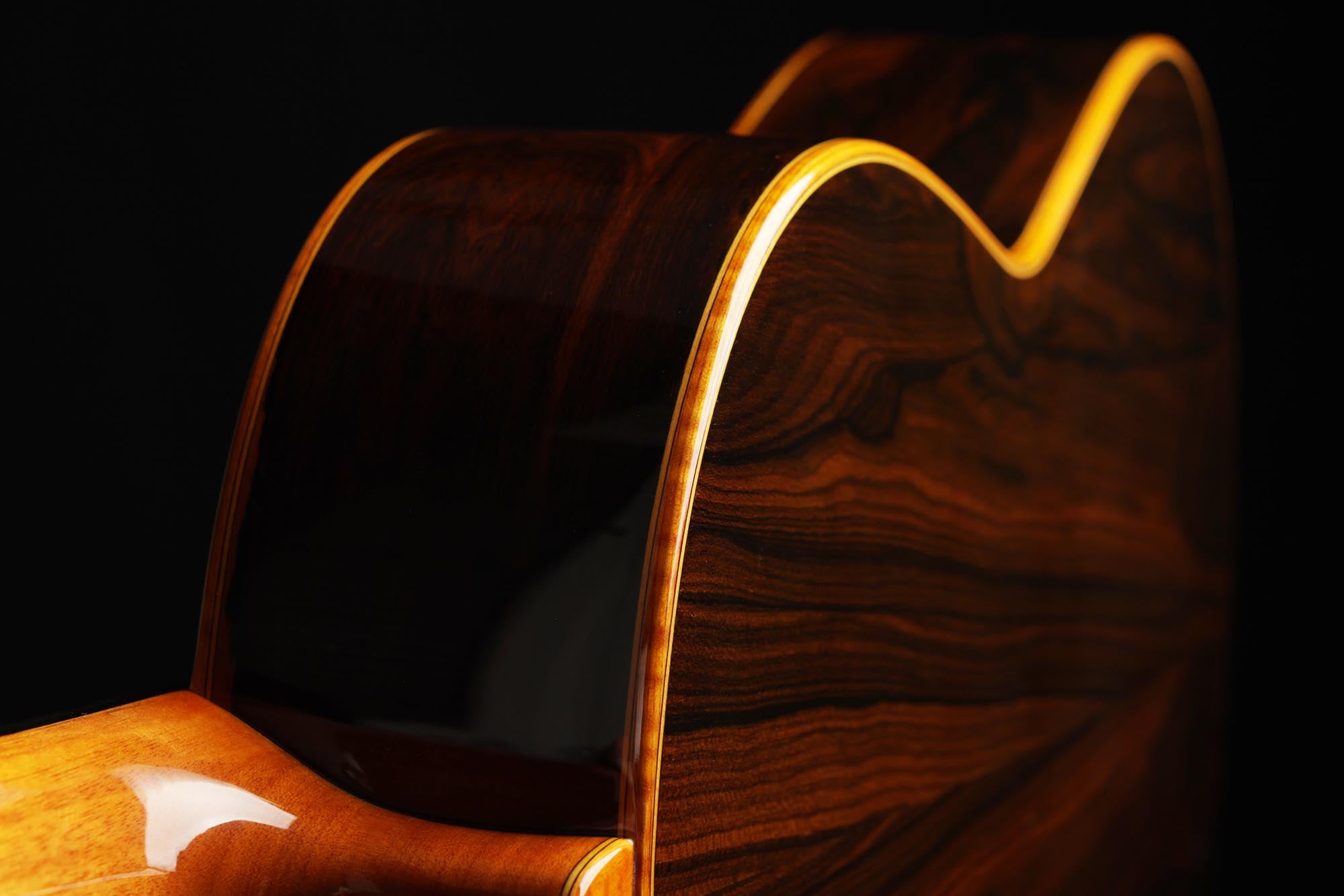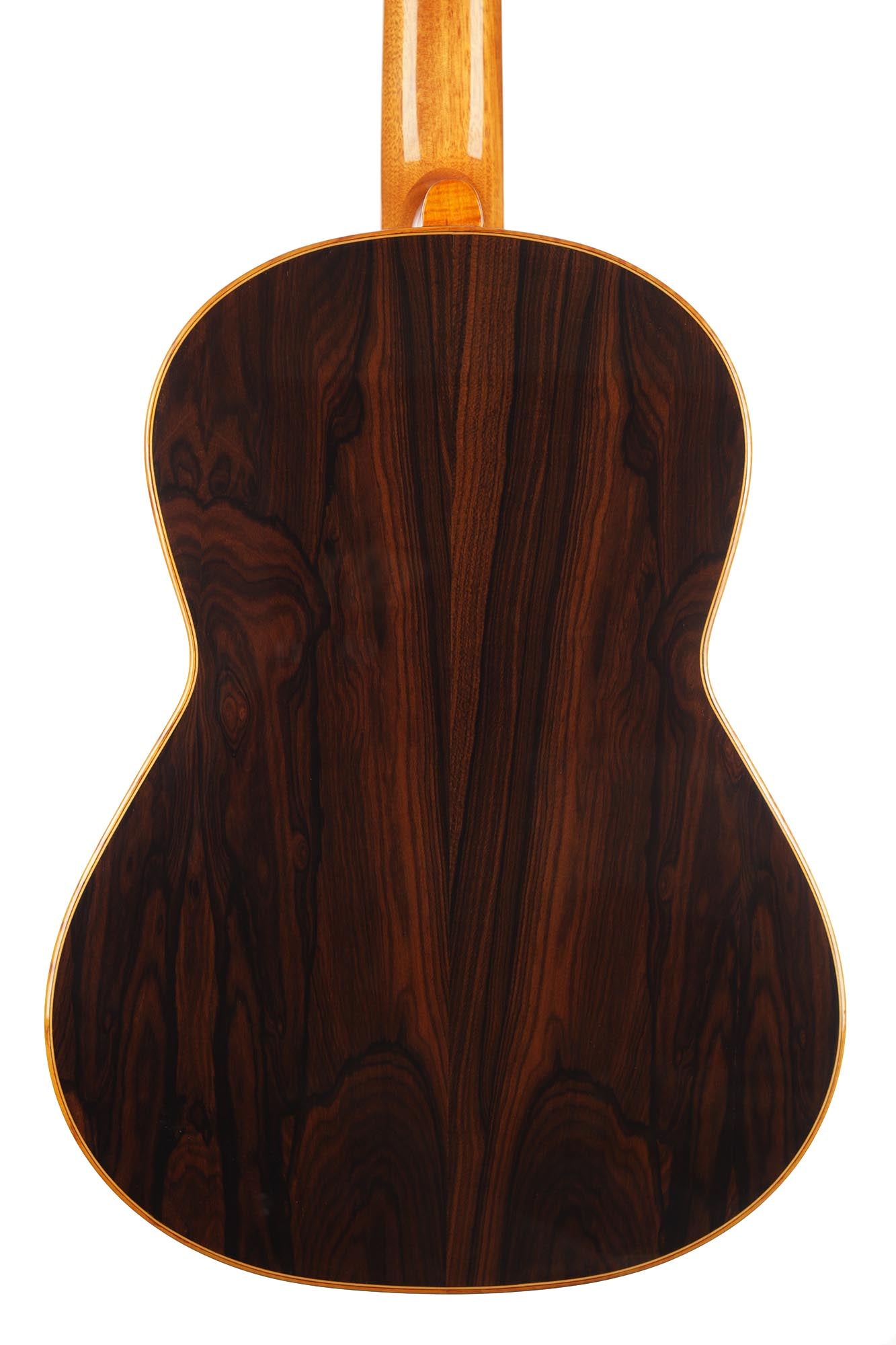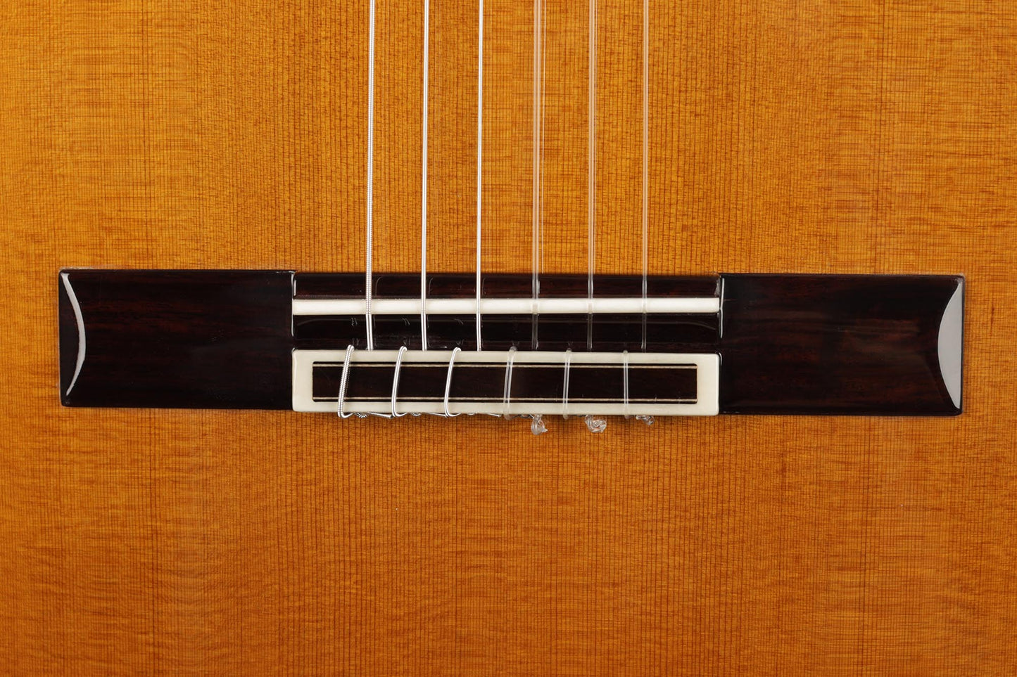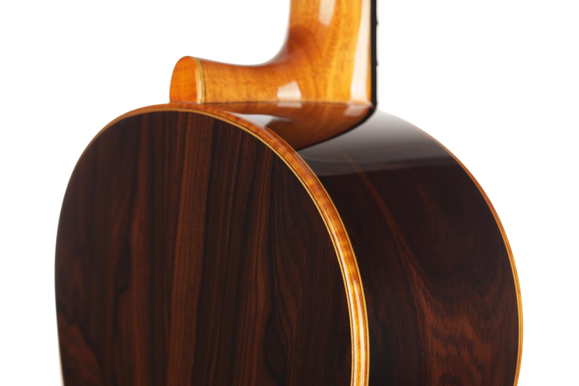 Dieses Instrument ist kraftvoll und warm klingend. Ein weicher und farbiger Ton wird sehr leicht und ohne Anstrengung erreicht. Auffallend ist auch die Leichtigkeit des Spiels für die linke Hand, die es dem Gitarristen erlaubt, frei zu spielen und schnell Fortschritte zu machen. Das Ergebnis ist eine wunderschön gearbeitete Gitarre, die mit ihrem überzeugenden Klang und ihrer leichten Spielbarkeit zu den besten Gitarren in dieser Preisklasse gehört.