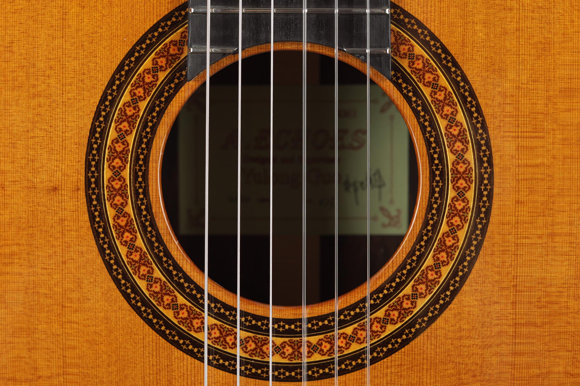 Yulong Guo ist wahrscheinlich der renommierteste chinesische Gitarrenbauer in und außerhalb Chinas. Er baut seit fast 40 Jahren Gitarren und hat uns ist mittlerweile wetweit renommiert. Einer der Höhepunkte seiner Karriere ist der Gewinn des zweiten Platzes bei einem Lutherie-Wettbewerb in Spanien vor kurzem. Er beeindruckte Besucher und die Jury gleichermaßen mit seiner meisterhaften Ausführung der Holzbearbeit und den außergewöhnlichen Klangqualitäten seiner Gitarren.