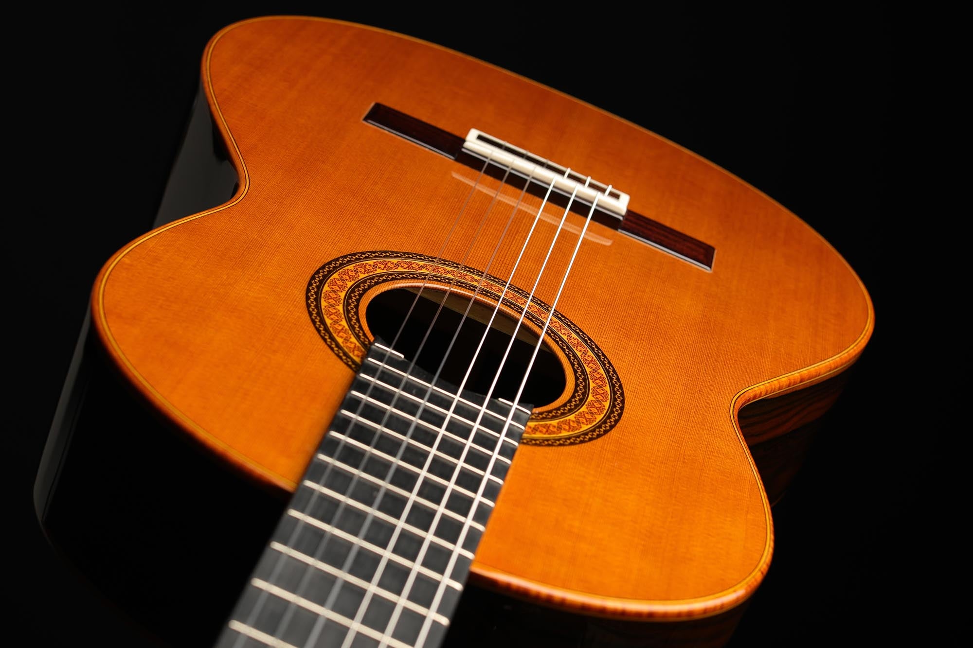 Dieses Instrument ist kraftvoll und warm klingend. Ein weicher und farbiger Ton wird sehr leicht und ohne Anstrengung erreicht. Auffallend ist auch die Leichtigkeit des Spiels für die linke Hand, die es dem Gitarristen erlaubt, frei zu spielen und schnell Fortschritte zu machen. Das Ergebnis ist eine wunderschön gearbeitete Gitarre, die mit ihrem überzeugenden Klang und ihrer leichten Spielbarkeit zu den besten Gitarren in dieser Preisklasse gehört.