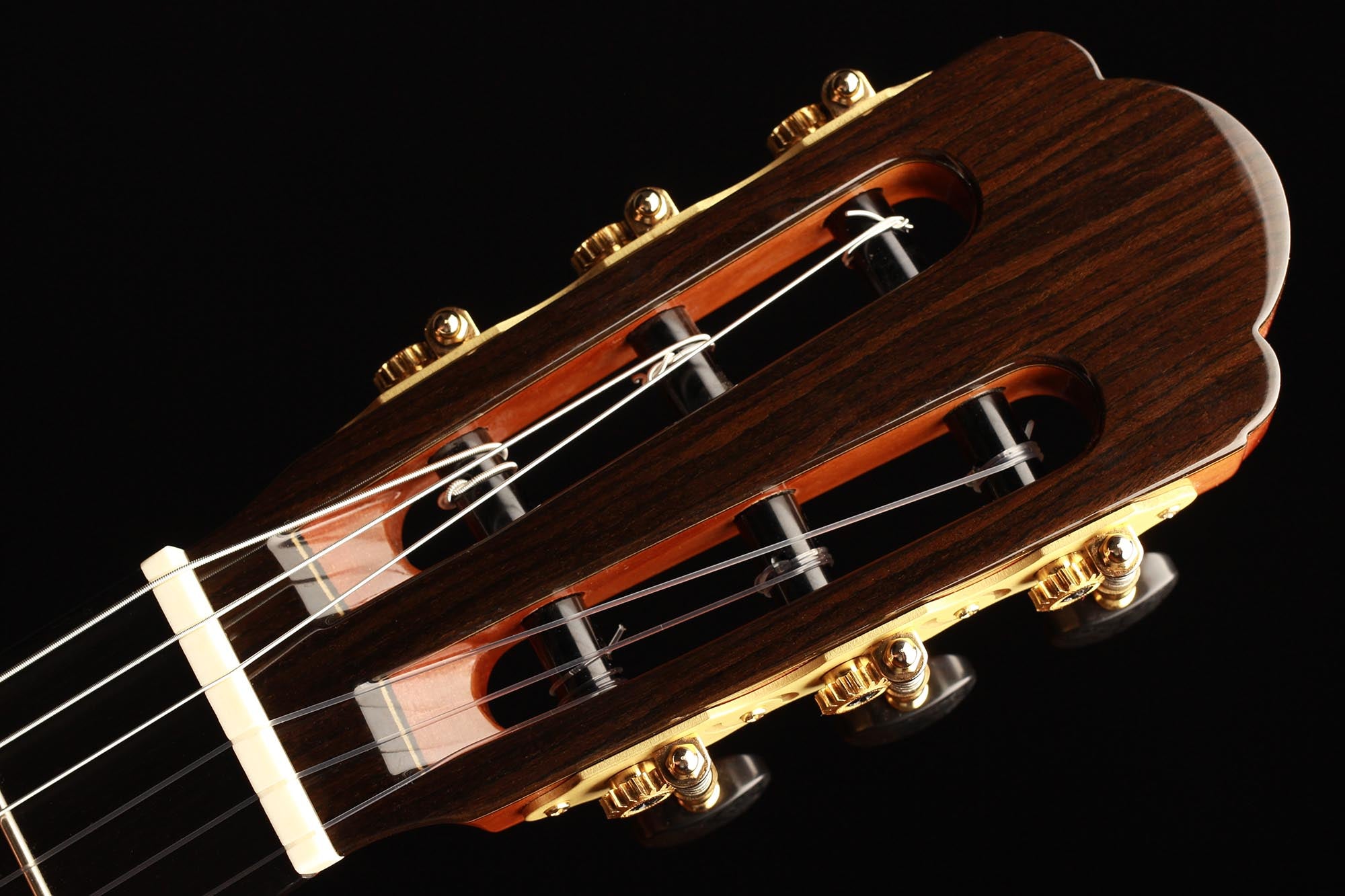 Für dieses Modell wurde die neueste Technologie der klassischen Gitarre verwendet: Double-Top, mit zwei ultradünnen Schichten hochwertiger Klanghölzer auf beiden Seiten einer Schicht Nomex, um die für die Haltbarkeit der Decke erforderliche Festigkeit zu erreichen. Boden und Seiten sind aus Santos Palisander gefertigt.