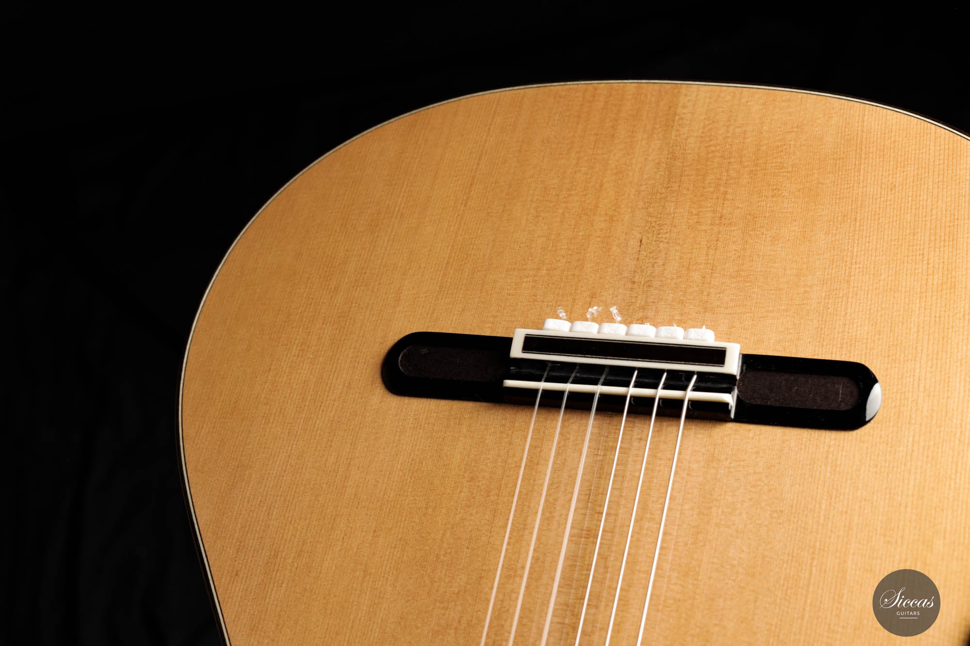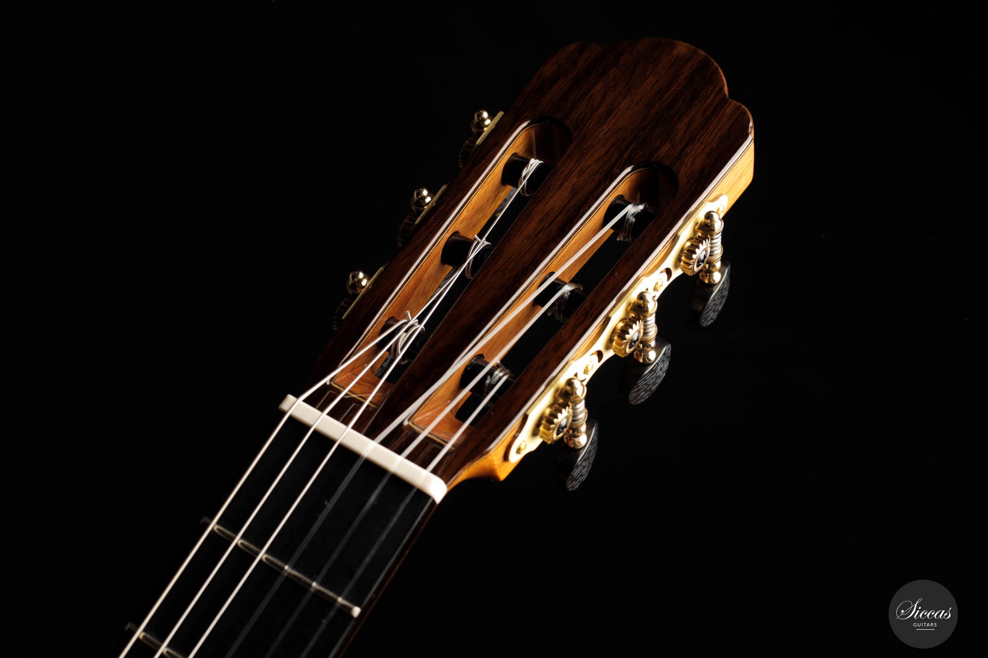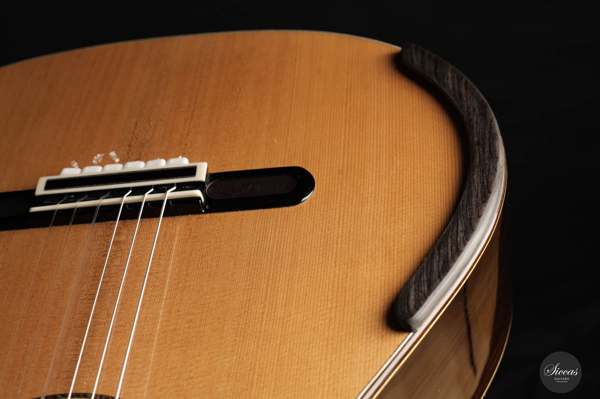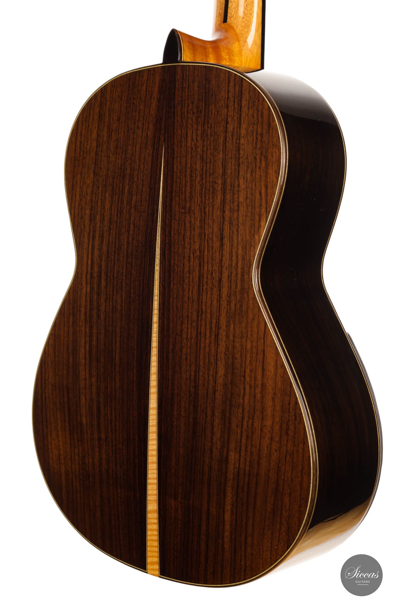 For this 40th Anniversary Chamber Concert model, the latest classical guitar technology was used: Double-top with two ultra-thin layers of first-class cedar on either side of a layer of Nomex to give the strength needed for the durability of the top. Using this technique also reduces the soundboard’s weight, and therefore enhances the guitar’s sound volume and responsiveness by far. Back and sides are made of Indian Rosewood, arched in the manner of the violin. This technique gives the guitar an amazing sound projection and volume, making it ideal for concert performances. Moreover, the upper bout of the body is sloped to provide a ‘raised fingerboard’ in the style of Humphrey guitars. Thanks to this slight change in the height of the fretboard, the playability of the trebles in high positions is greatly improved. A techwood armrest, ultra-smooth frets along with an extra sound port on the side, and a low string action make the Chamber Concert model exceptionally easy and comfortable to play.