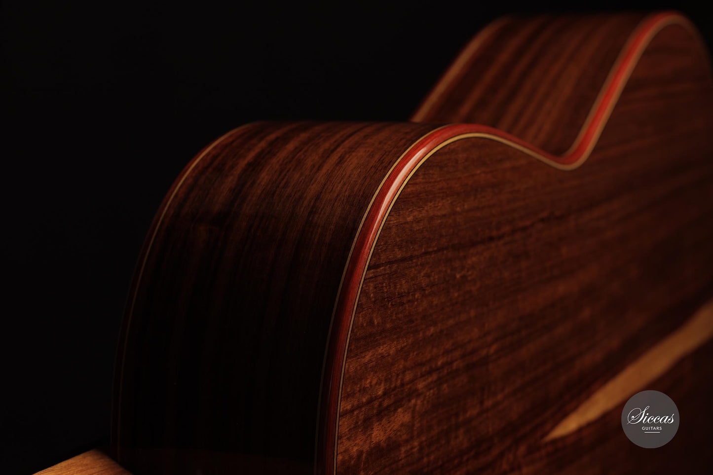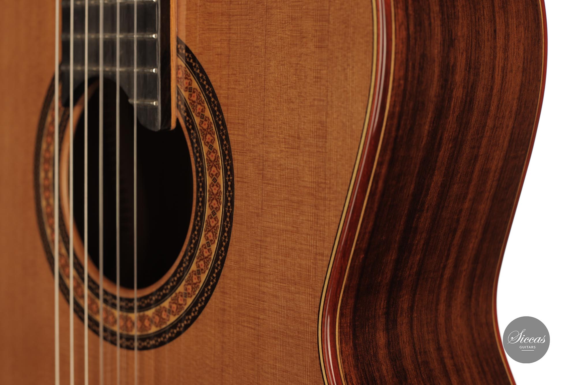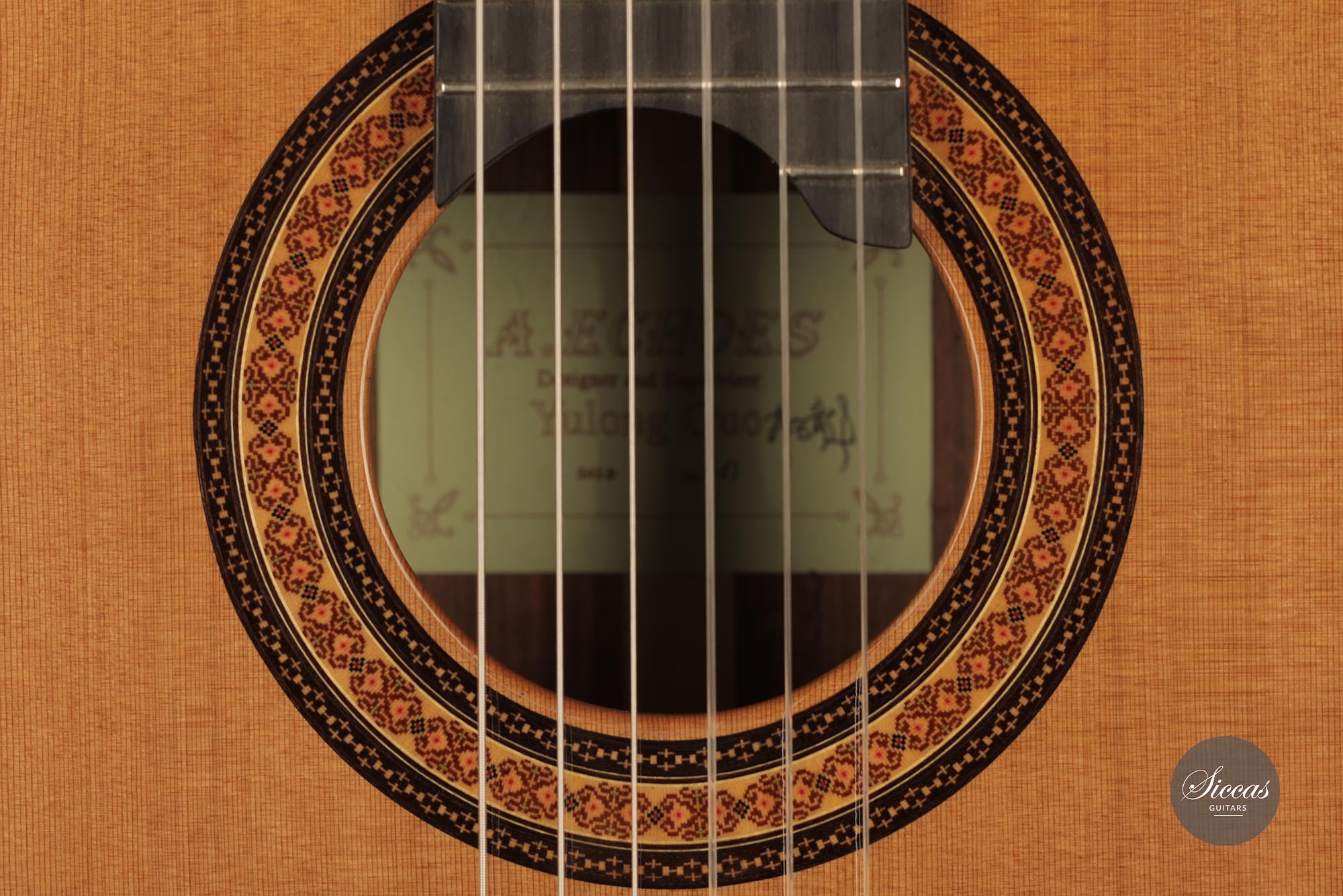 Dieses Instrument ist kraftvoll und warm klingend. Ein weicher und farbiger Ton wird sehr leicht und ohne Anstrengung erreicht. Dank des erhöhten Griffbretts hebt sich diese besondere Gitarre von den anderen A. Echoes-Modellen ab und bietet einen hohen Spielkomfort in den hohen Lagen ab dem 12. Bund Auffallend ist auch die Leichtigkeit des Spiels für die linke Hand, die es dem Gitarristen erlaubt, frei zu spielen und schnell Fortschritte zu machen. Das Ergebnis ist eine wunderschön gearbeitete Gitarre, die mit ihrem überzeugenden Klang und ihrer leichten Spielbarkeit zu den besten Gitarren in dieser Preisklasse gehört.