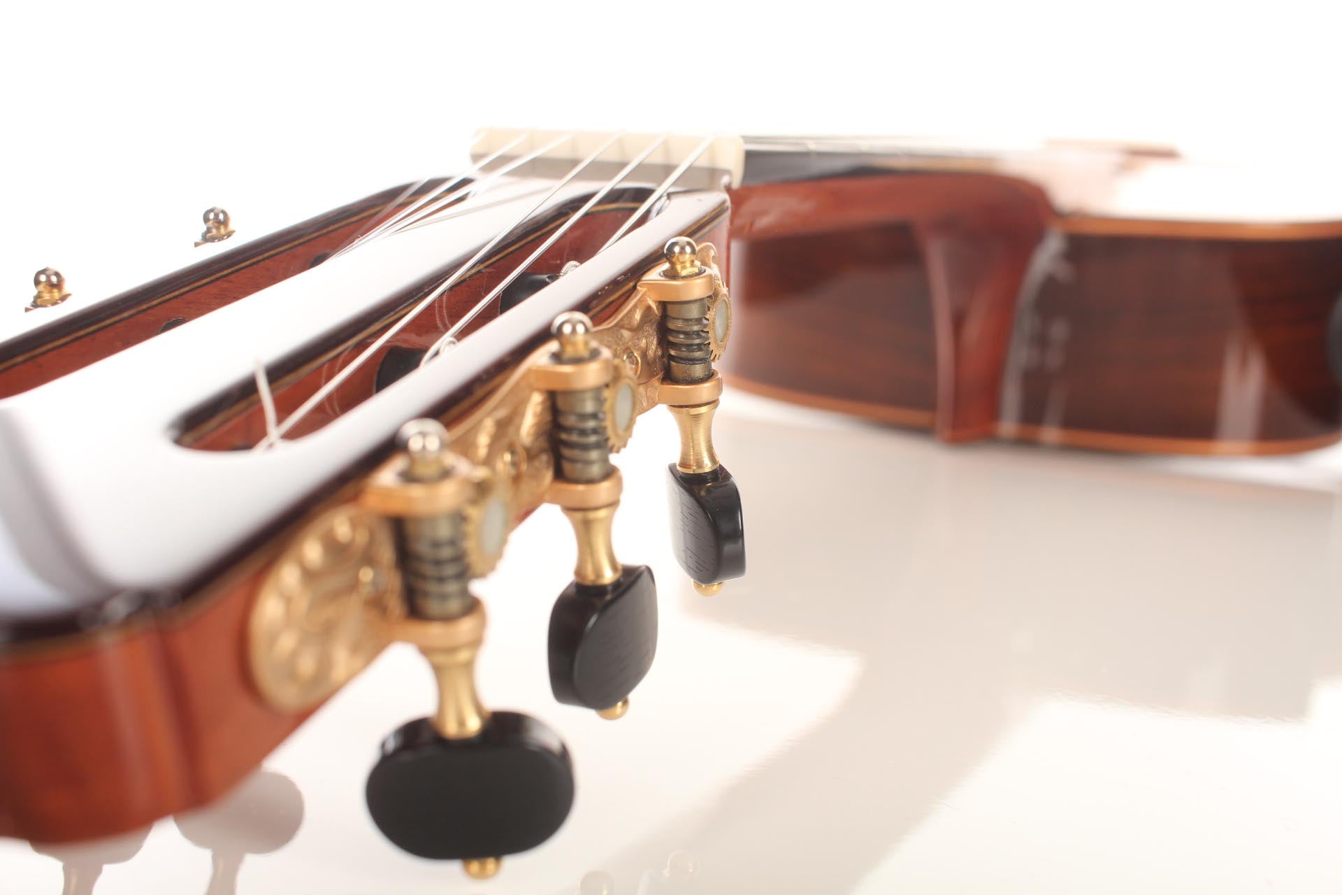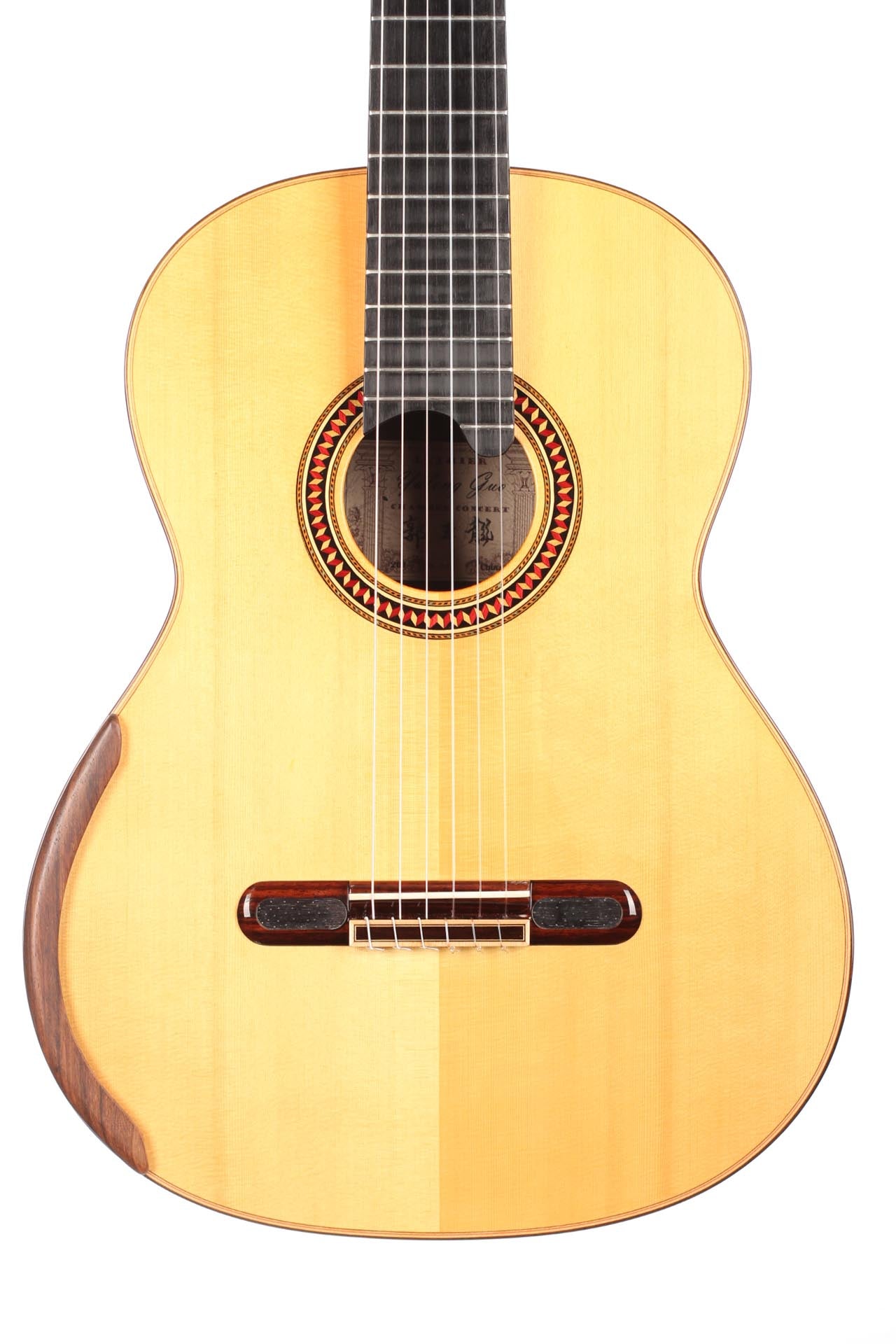 Die klassische Gitarre mit ihren weichen Nylonsaiten und ihrem charakteristischen Timbre ist zum Symbol der Kammermusik, der spanischen Tradition und des Konzertrepertoires geworden. Ihre moderne Form prägte Antonio de Torres im 19. Jahrhundert, indem er den Standard für Korpus, Fächerbeleistung und die 65-Zentimeter-Mensur setzte, die bis heute verwendet werden. Instrumente dieser Kategorie eröffnen eine reiche Palette von den feinen romantischen Miniaturen Tárregas bis zu den majestätischen Konzerten Rodrigos. Hier finden Sie Gitarren, die historische Kontinuität bewahren und zugleich zu neuen Interpretationen anregen.