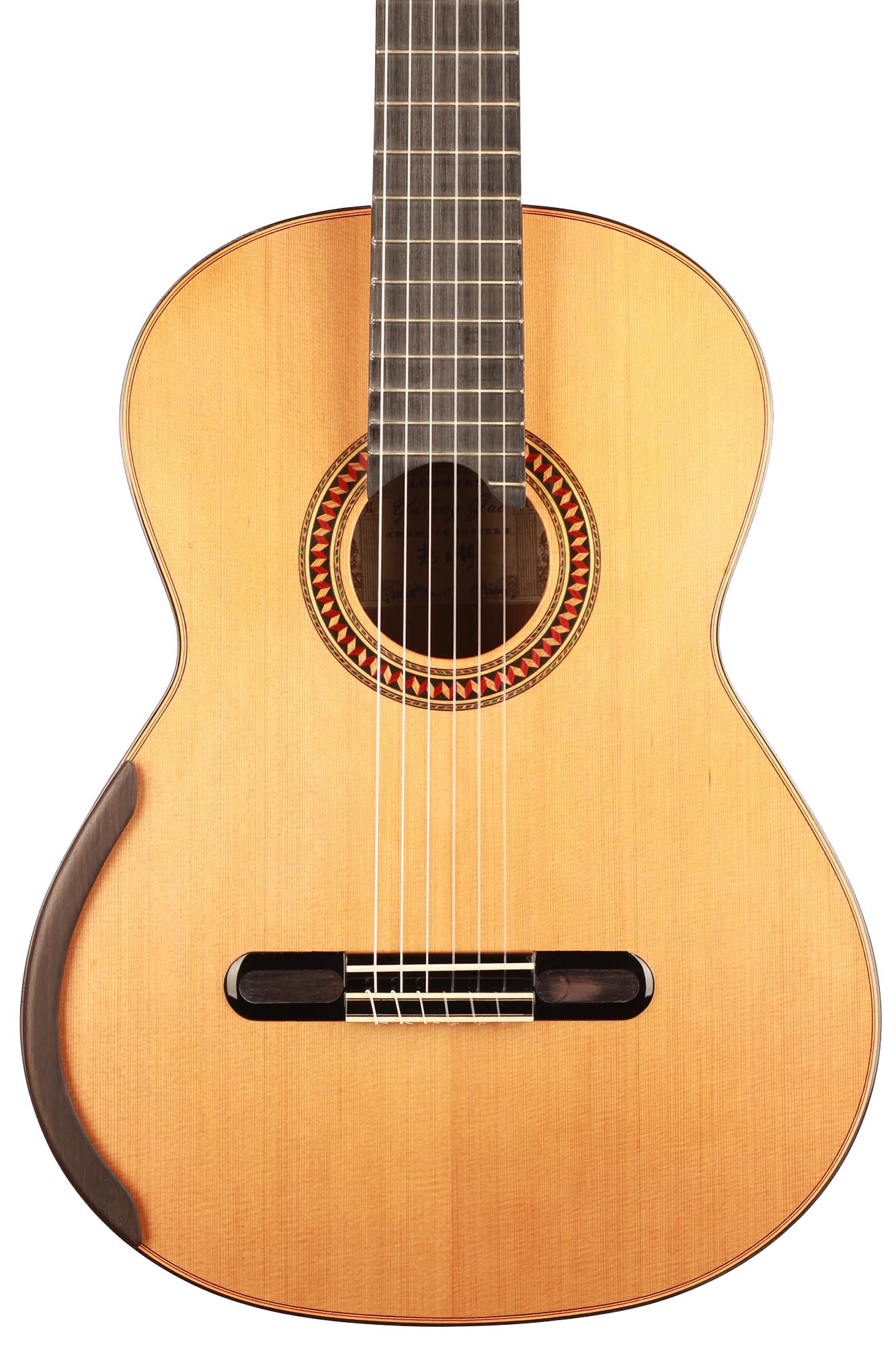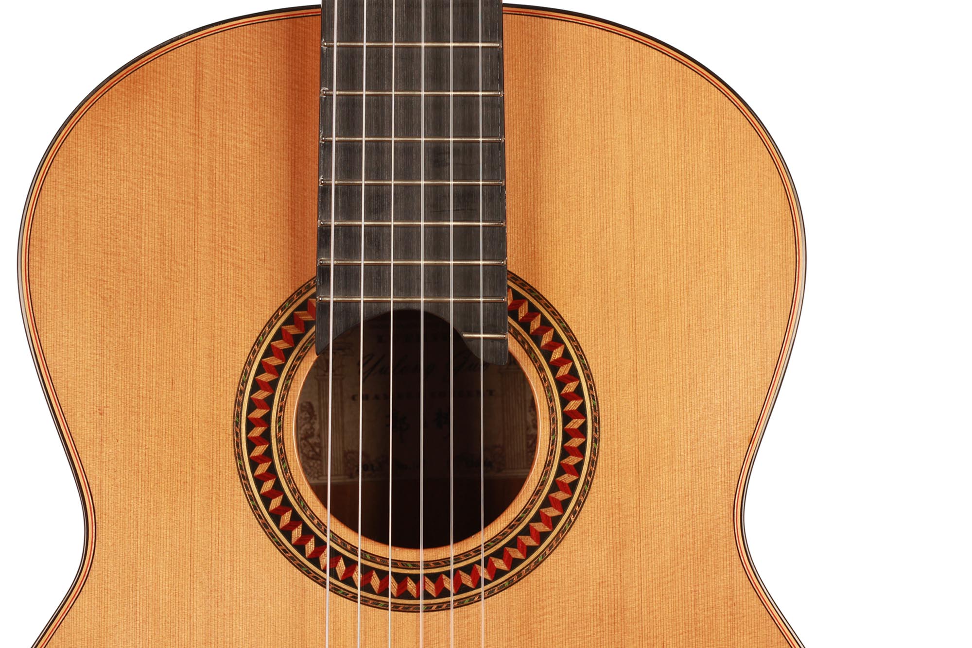Die klassische Gitarre mit ihren weichen Nylonsaiten und ihrem charakteristischen Timbre ist zum Symbol der Kammermusik, der spanischen Tradition und des Konzertrepertoires geworden. Ihre moderne Form prägte Antonio de Torres im 19. Jahrhundert, indem er den Standard für Korpus, Fächerbeleistung und die 65-Zentimeter-Mensur setzte, die bis heute verwendet werden. Instrumente dieser Kategorie eröffnen eine reiche Palette von den feinen romantischen Miniaturen Tárregas bis zu den majestätischen Konzerten Rodrigos. Hier finden Sie Gitarren, die historische Kontinuität bewahren und zugleich zu neuen Interpretationen anregen.Alle Produkte der Kollektion ansehen -