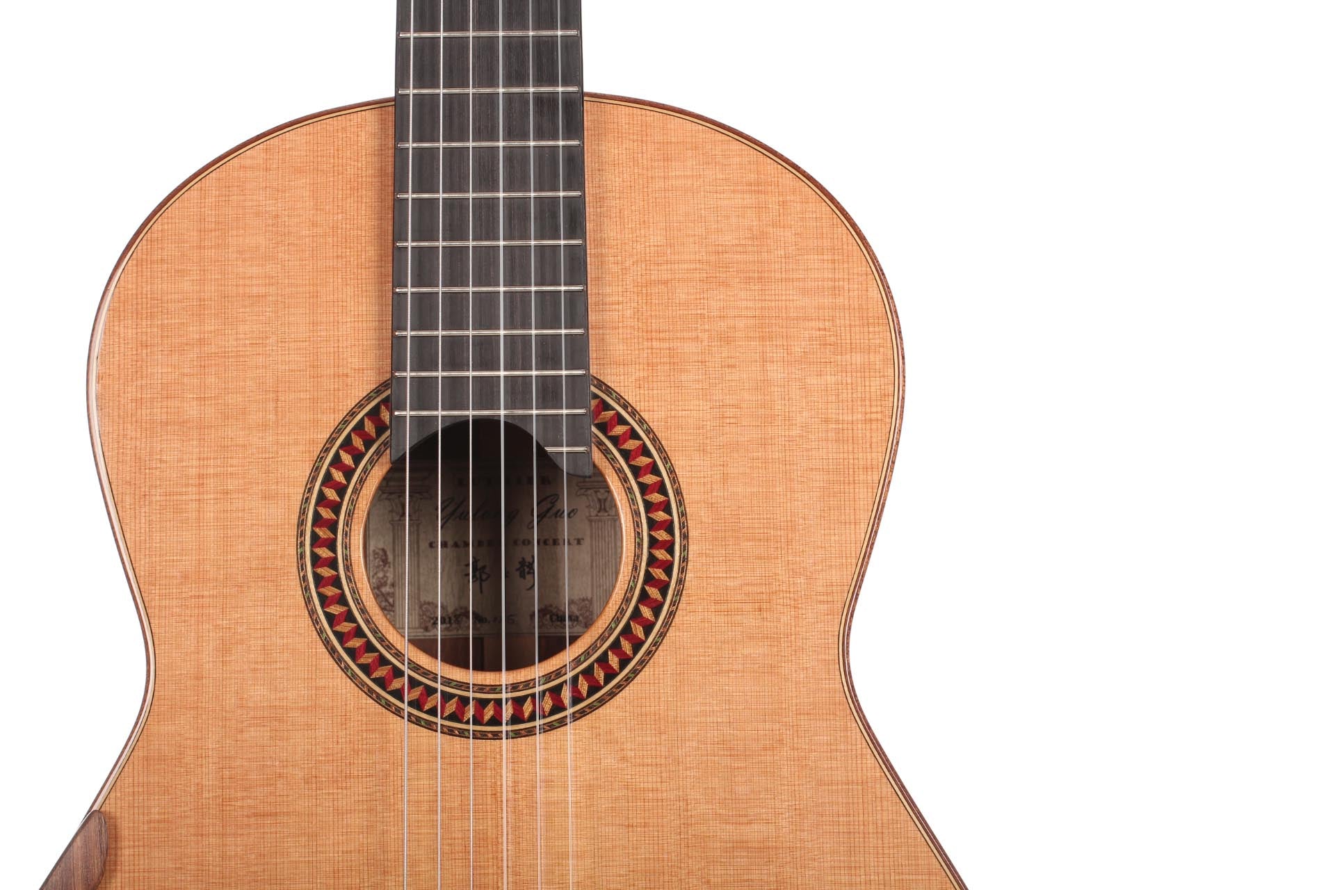 The Concert model by Master Luthier Yulong Guo is a world-class professional concert guitar. The craftsmanship in the woodworking and finish are evident and matched by the wonderful acoustic properties of this beautiful guitar.