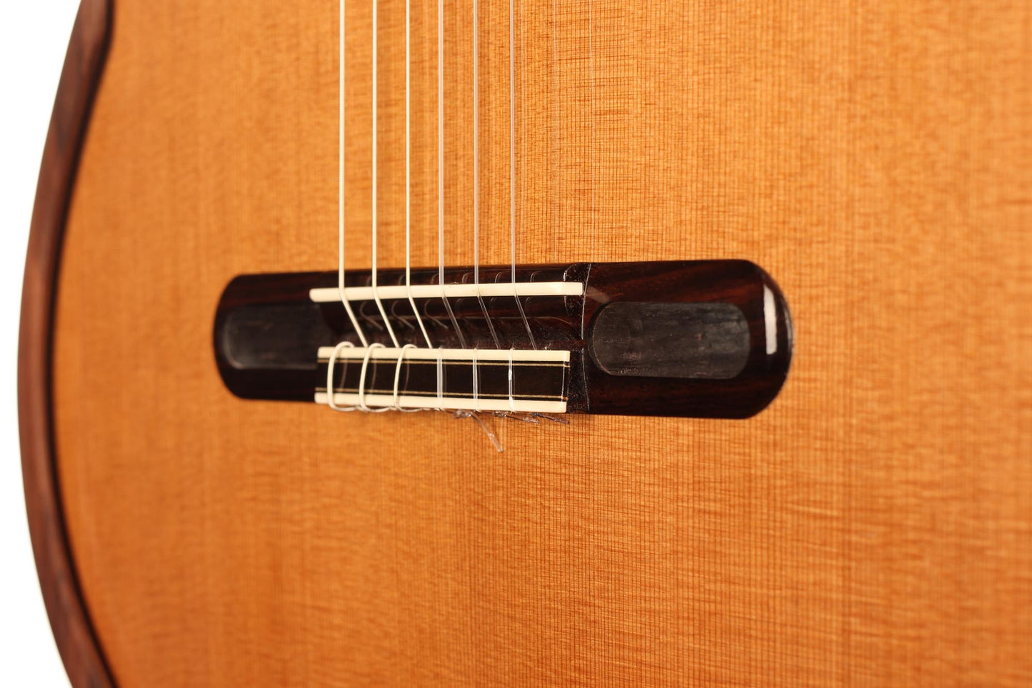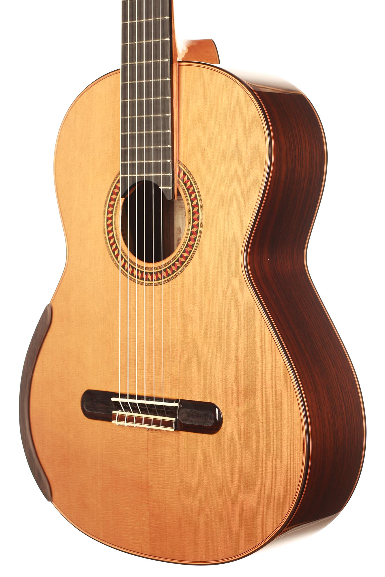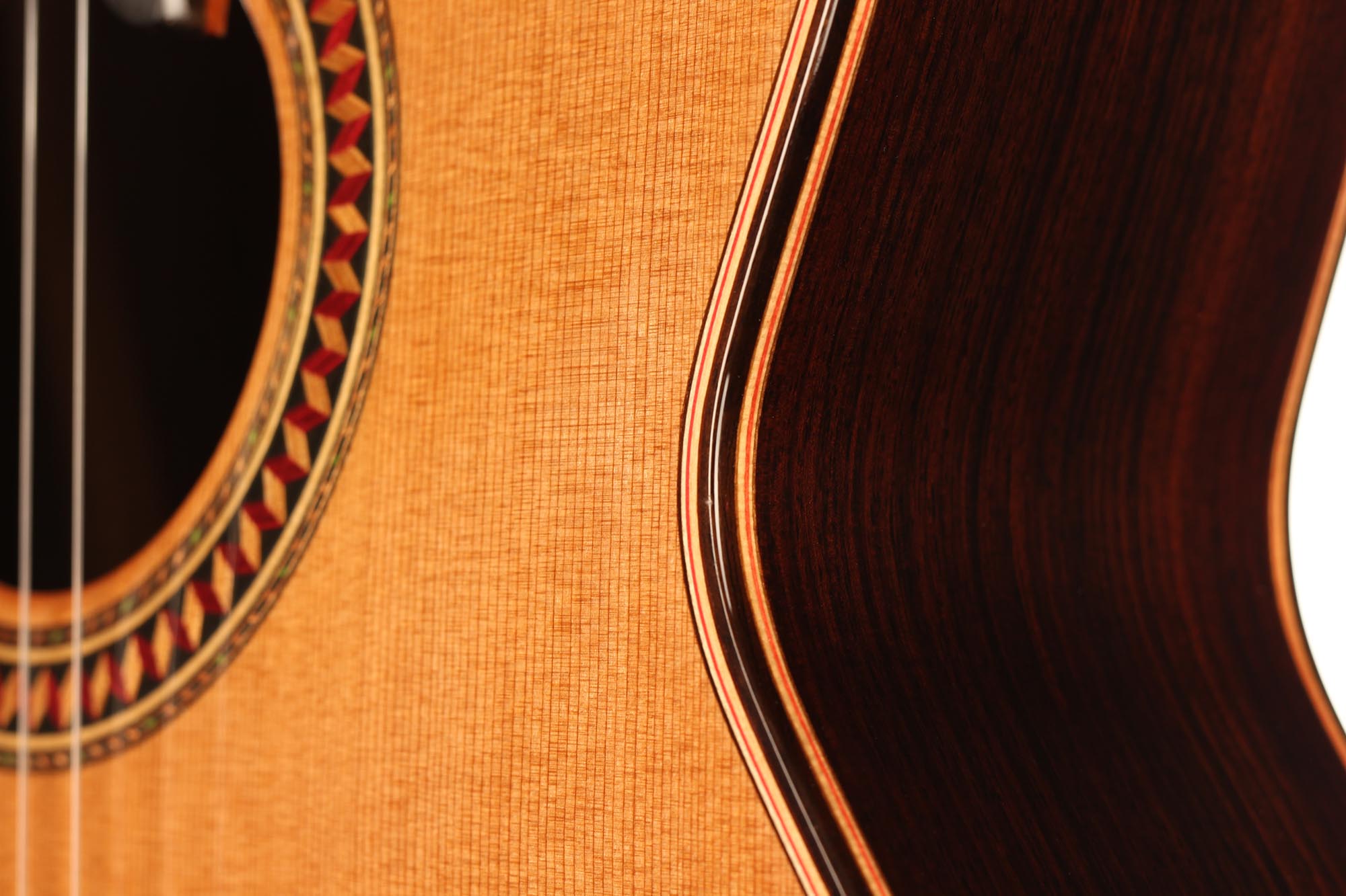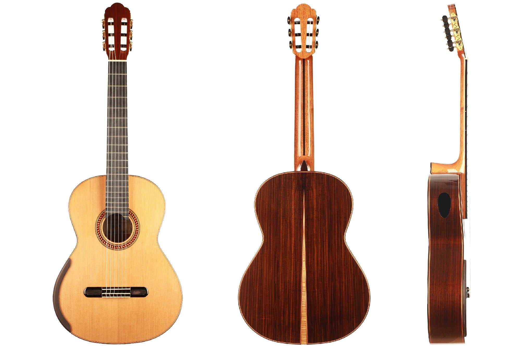 Die klassische Gitarre mit ihren weichen Nylonsaiten und ihrem charakteristischen Timbre ist zum Symbol der Kammermusik, der spanischen Tradition und des Konzertrepertoires geworden. Ihre moderne Form prägte Antonio de Torres im 19. Jahrhundert, indem er den Standard für Korpus, Fächerbeleistung und die 65-Zentimeter-Mensur setzte, die bis heute verwendet werden. Instrumente dieser Kategorie eröffnen eine reiche Palette von den feinen romantischen Miniaturen Tárregas bis zu den majestätischen Konzerten Rodrigos. Hier finden Sie Gitarren, die historische Kontinuität bewahren und zugleich zu neuen Interpretationen anregen.
