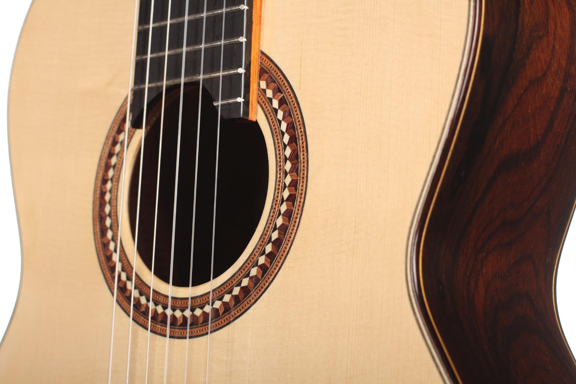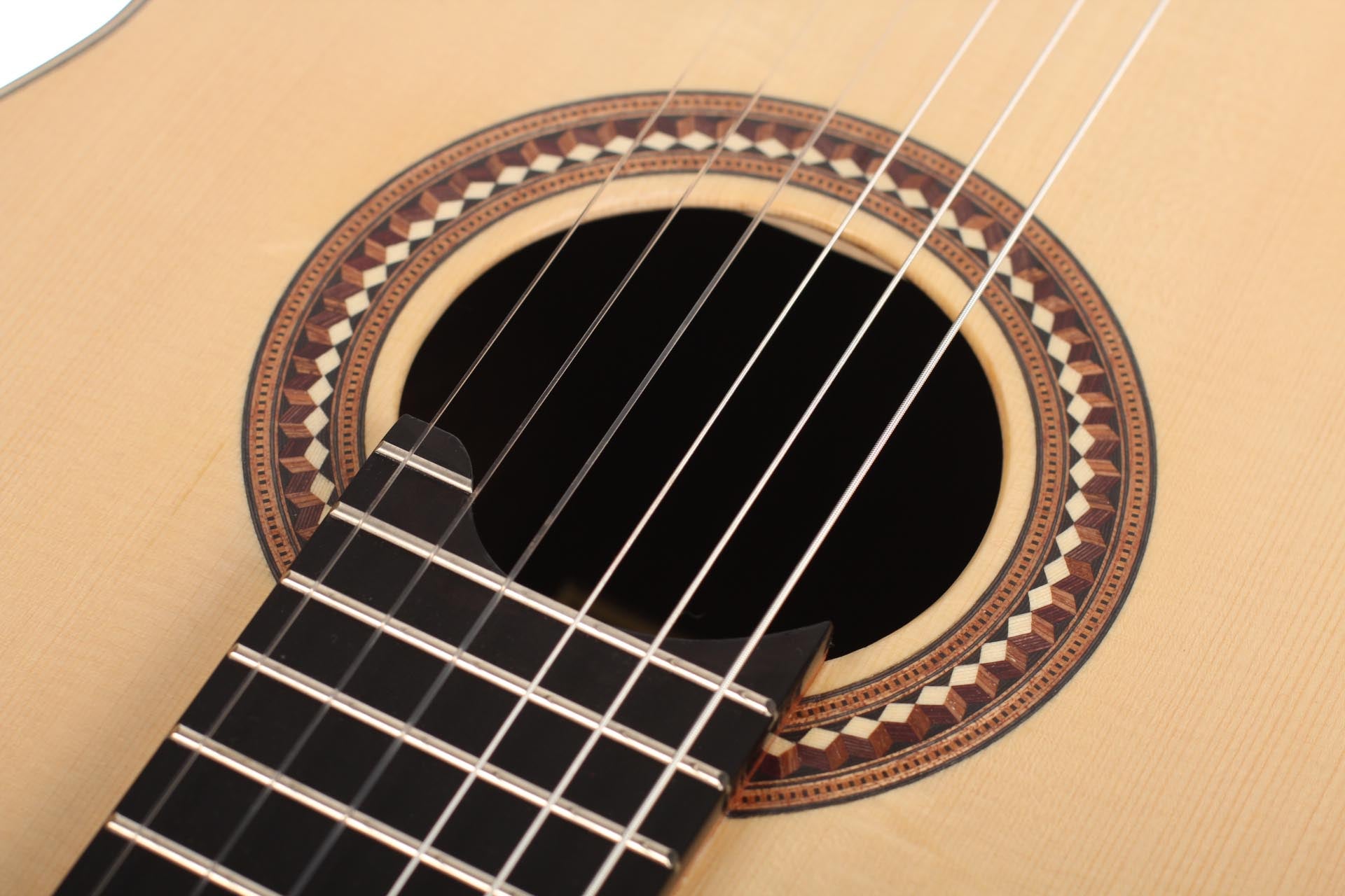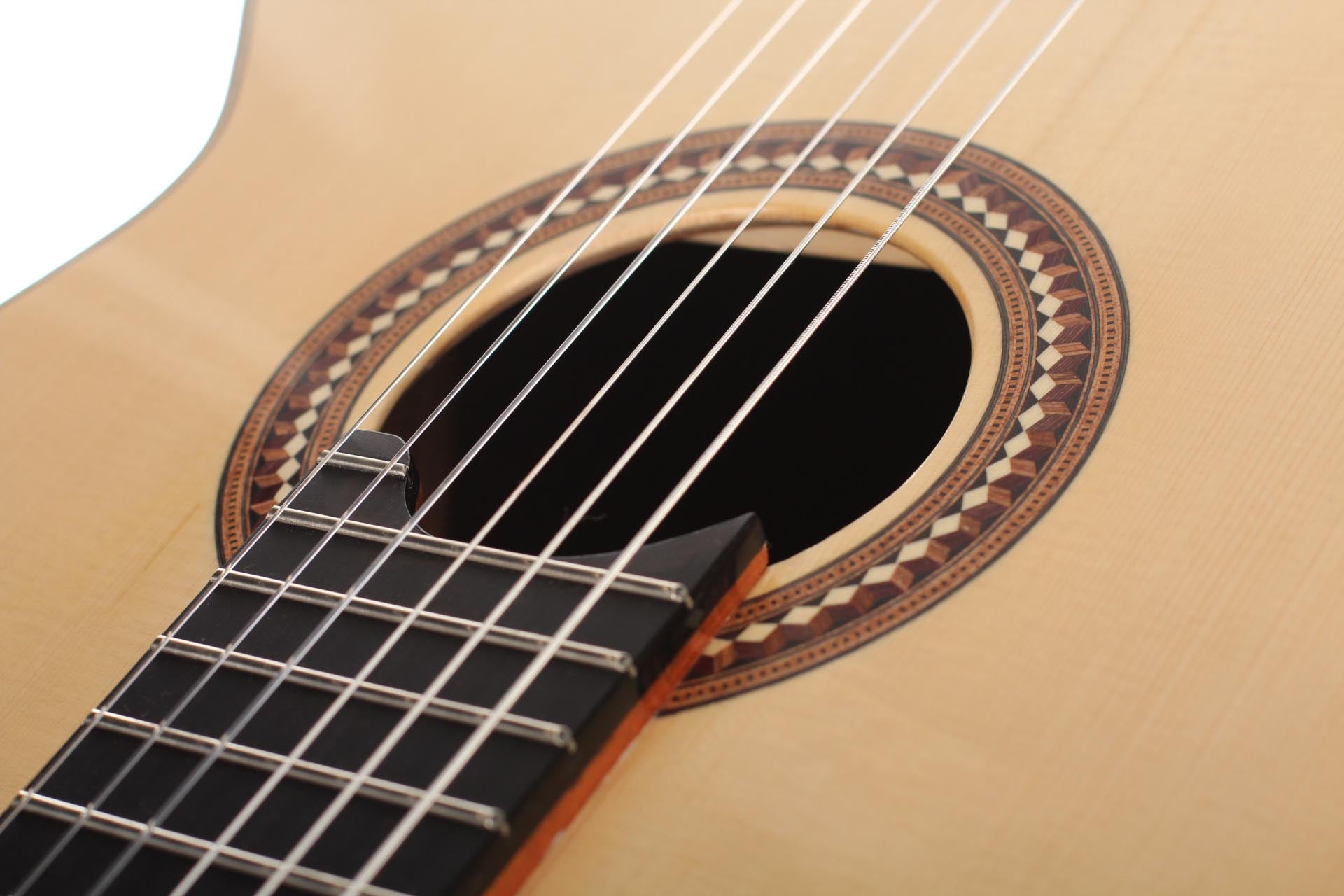 Die klassische Gitarre mit ihren weichen Nylonsaiten und ihrem charakteristischen Timbre ist zum Symbol der Kammermusik, der spanischen Tradition und des Konzertrepertoires geworden. Ihre moderne Form prägte Antonio de Torres im 19. Jahrhundert, indem er den Standard für Korpus, Fächerbeleistung und die 65-Zentimeter-Mensur setzte, die bis heute verwendet werden. Instrumente dieser Kategorie eröffnen eine reiche Palette von den feinen romantischen Miniaturen Tárregas bis zu den majestätischen Konzerten Rodrigos. Hier finden Sie Gitarren, die historische Kontinuität bewahren und zugleich zu neuen Interpretationen anregen.Alle Produkte der Kollektion ansehen -
