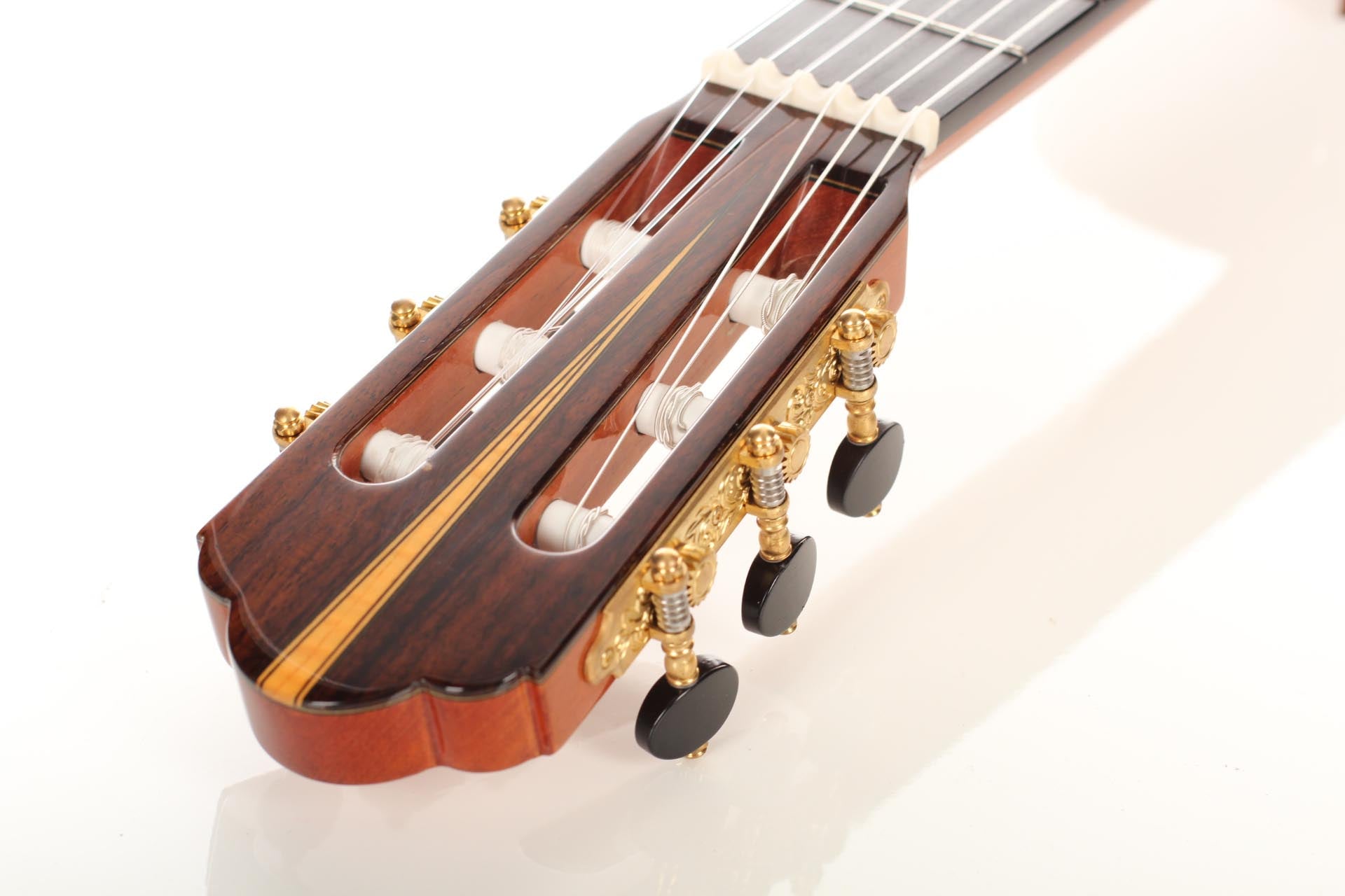 Gitarrenbauer: José Luis RomanillosBaujahr: 1979Decke: SpruceBoden und Zargen: Indian rosewoodDeckenoberfläche: French polishKorpusoberfläche: French polishLuftresonanz: G / G sharpGewicht (g): 1410Mechaniken: Klaus SchellerZustand: Excellent