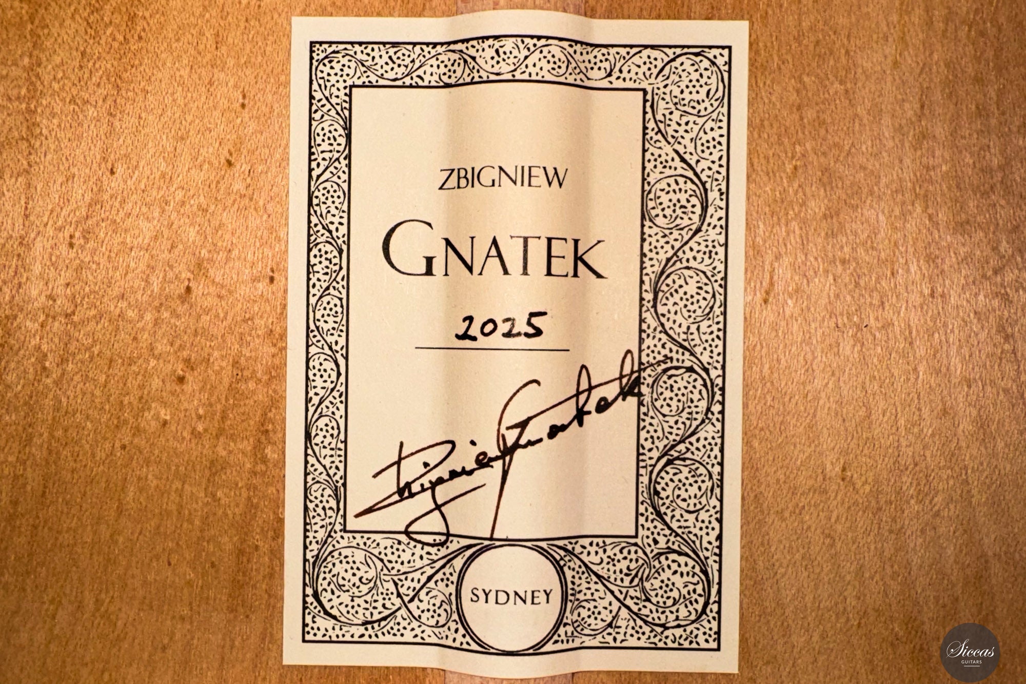 Zbigniew Gnatek gehört zu den renommiertesten zeitgenössischen Gitarrenbauern Australiens und arbeitet in seiner Werkstatt in Sydney. Seine Gitarren vereinen die europäische Gitarrenbautradition mit der klanglichen Ästhetik der australischen Schule – insbesondere durch die präzise Umsetzung der Lattice-Beleistung und den doppelt gearbeiteten Korpus. Im Laufe der Jahre hat er sich durch sein Streben nach klanglicher Fülle, makellosem Handwerk und innovativen baulichen Konzepten international einen Namen gemacht. Seine Instrumente werden von Profis weltweit gespielt und sind aufgrund seiner langen Warteliste und der limitierten Stückzahl nur selten erhältlich.